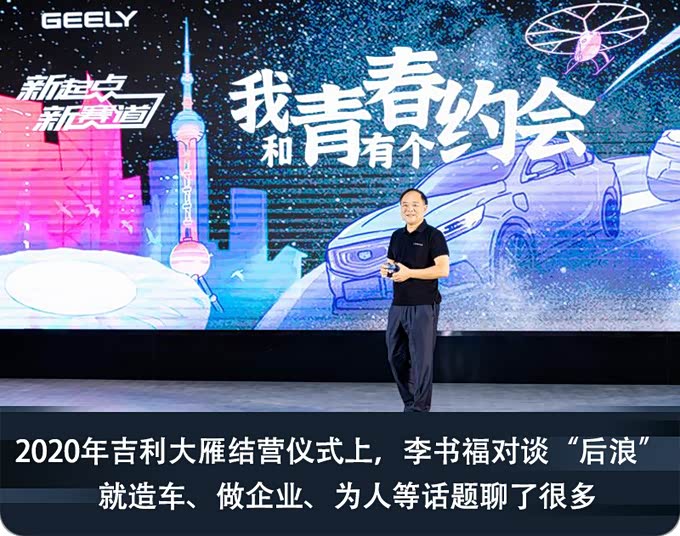前不久,2020年吉利控股集团大雁结营仪式在浙江汽车职业技术学院举行,仪式上,李书福与年轻人对话,据悉这一环节已成为每年仪式的一项传统。