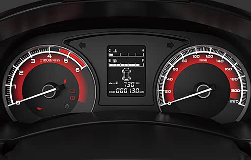 组合仪表盘采用红色元素进行点缀,从主驾驶席看去,带有更强烈的性能车风格,中央区域则是单色行车信息屏,包括平均油耗、时速和续航里程均在此显示,一目了然。