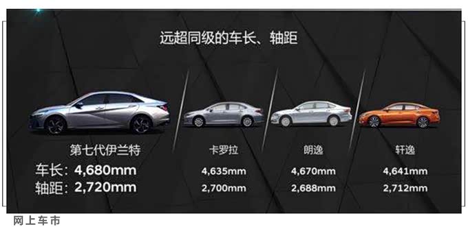 第七代伊兰特最大程度沿用海外版设计,整体风格前卫,包括三种造型的轮毂、尾部上翘的小鸭尾、翼型后保险杠、1.4T车型专属扩散器以及单边双出排气管等,运动质感大幅提升。此外,第七代伊兰特还提供极地白、幻影黑、冰海蓝、太空灰、炫彩橙以及烈焰红6种车身颜色。尺寸方面,第七代伊兰特拥有远超同级的车长与轴距,内部空间更具优势。