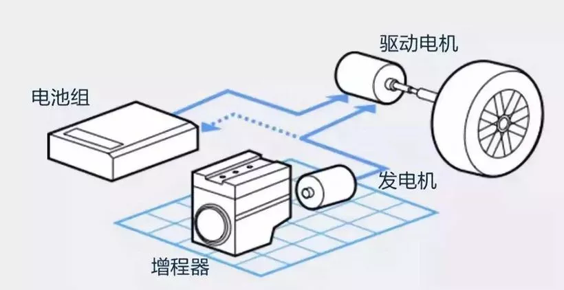 增程式电动车的本质属性还是纯电动车型,增加了一个发动机只是为了延长续航里程,发动机把燃油转化为动能,再带动发动机转化为电能。