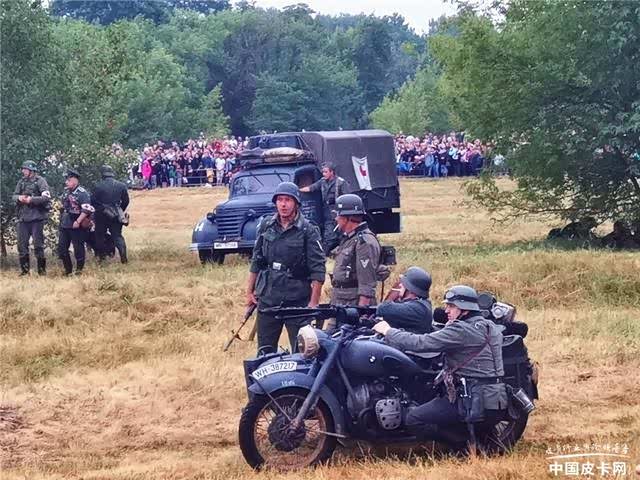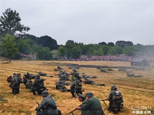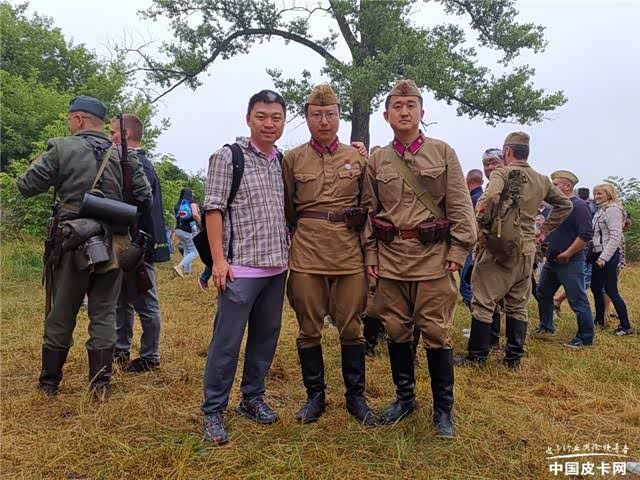正打扫战场时,碰上了参加演出的中国演员,同时也是专业的军事爱好者。上前攀谈才知道,这个模拟表演的演员是面向全世界招募的。只是对报名者的要求很严格,需要具备相应的军事素养,同时服装要自备。其中一位已经是连续五年参加了,另一位则是今年受邀一起参加的朋友。