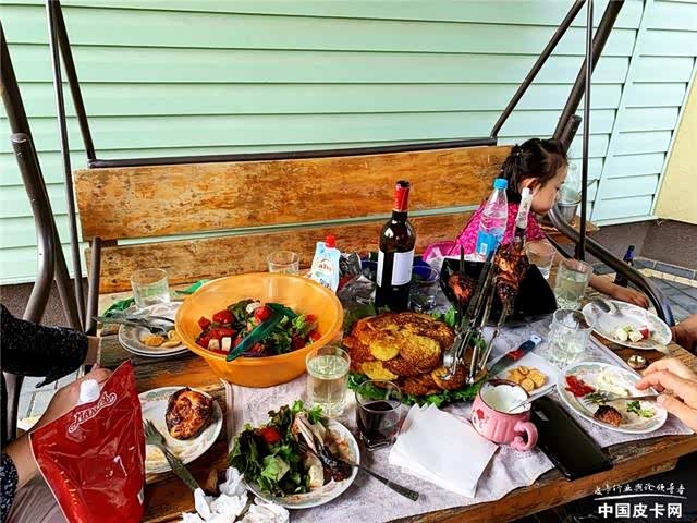 午餐高潮怎么能少得了俄式烤肉!与Nicolai小喝上一杯啤酒,就打开了话匣子。他们对我们的旅行很感兴趣,我们天南海北聊了许多,包括我们对白罗斯的看法、二战历史、政治、老百姓的生活、房价等等。
