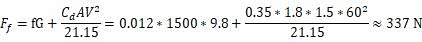 这可以让一辆车继续以60km/h在平地上匀速行驶多远呢?首先是车辆匀速行驶时的阻力: