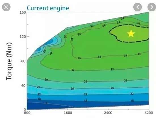 可以比较一下这两张图,电机和内燃机效率MAP虽然外轮廓(外特性)不一样,但效率变化的趋势是不是长得差不多?低转速低扭矩效率低,中间偏高输出的位置效率更高。
