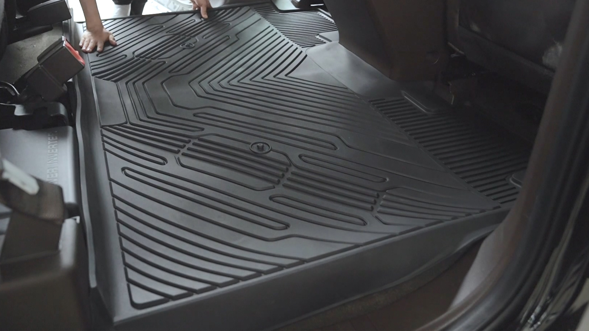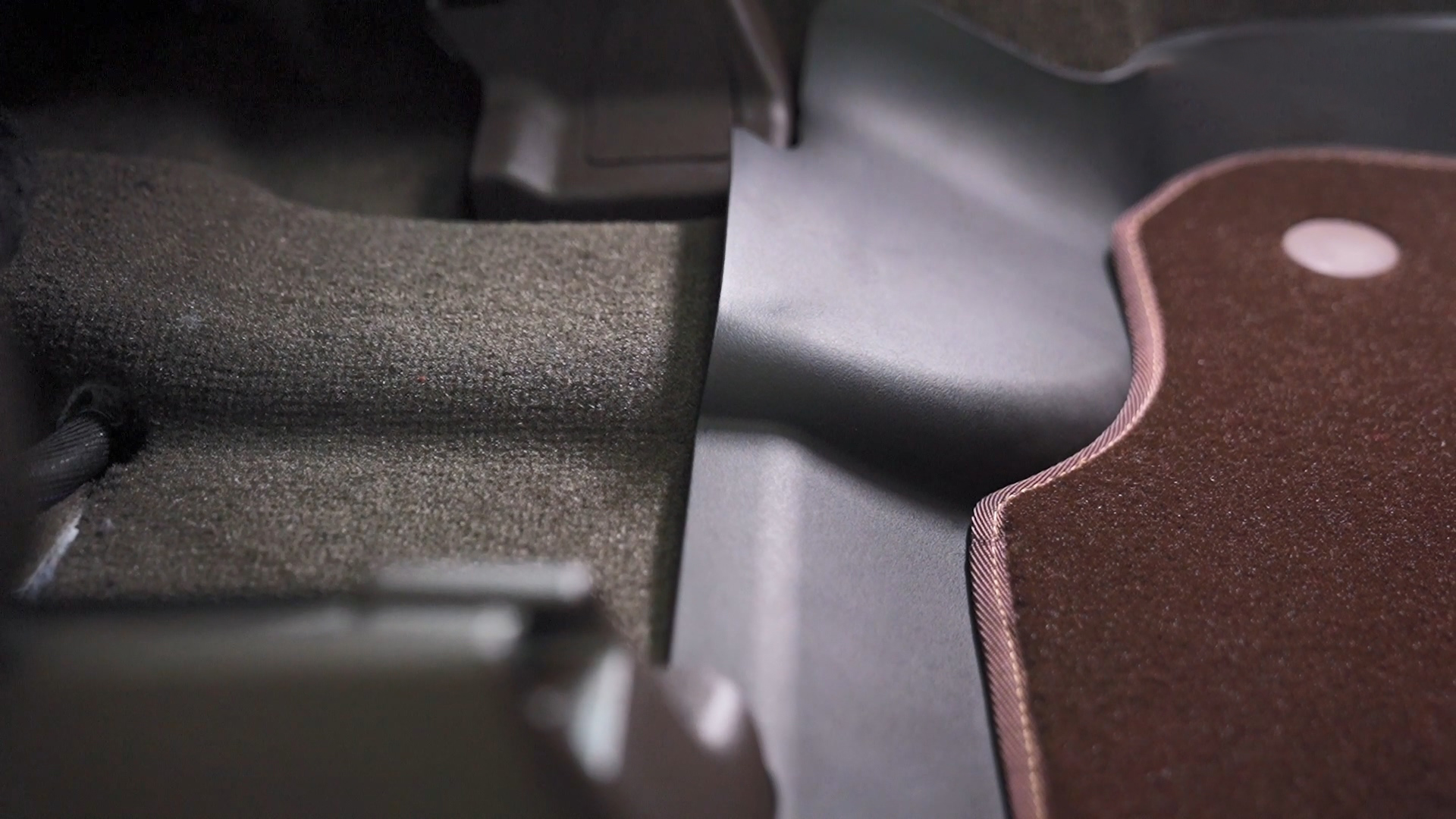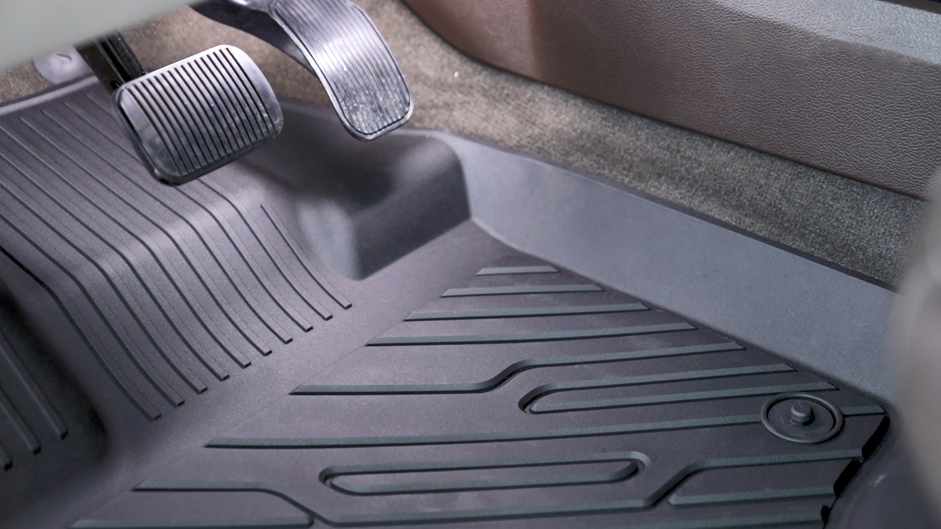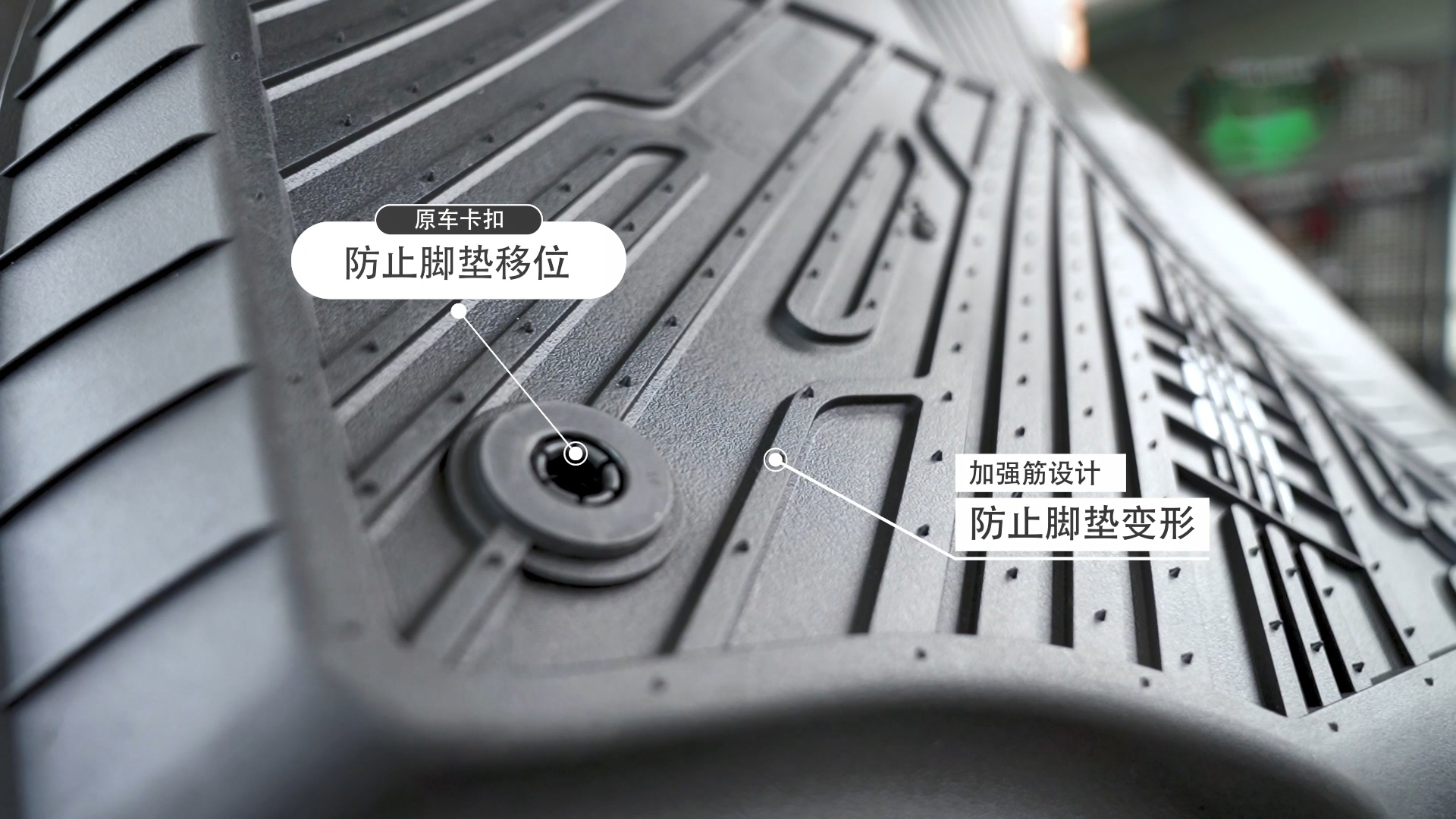 ▲原车的贴合度超级高,据说是给诸多主机厂做配套,数据可以直接采集,比起丝圈这种机械裁剪和大包围伪立体的脚垫来说,极度舒适!