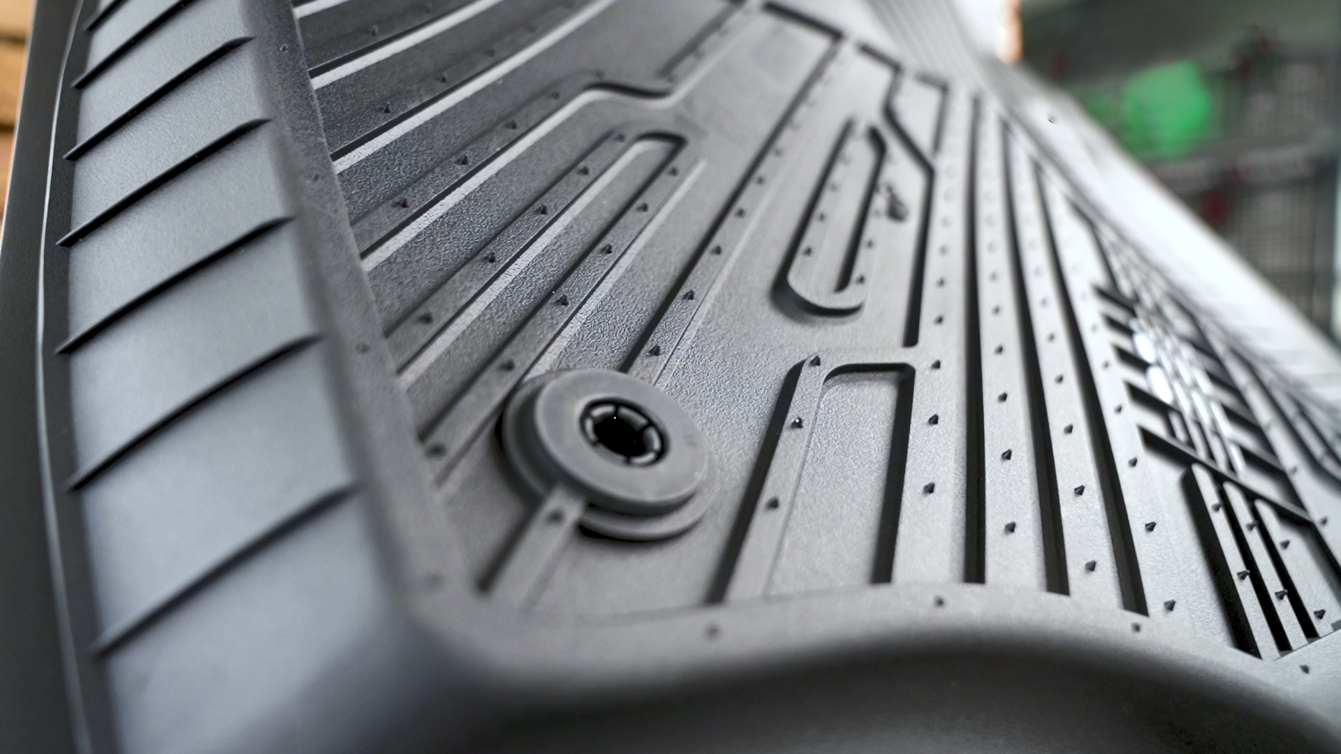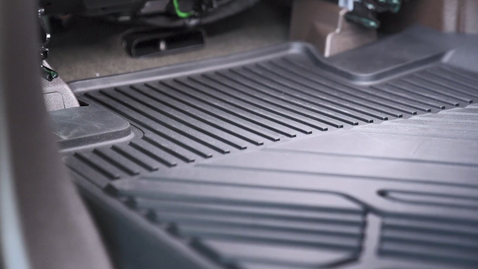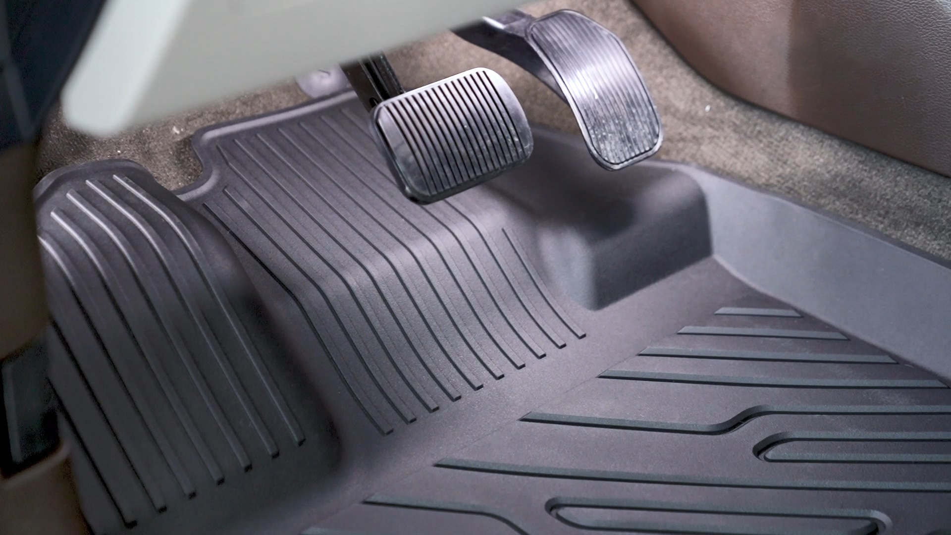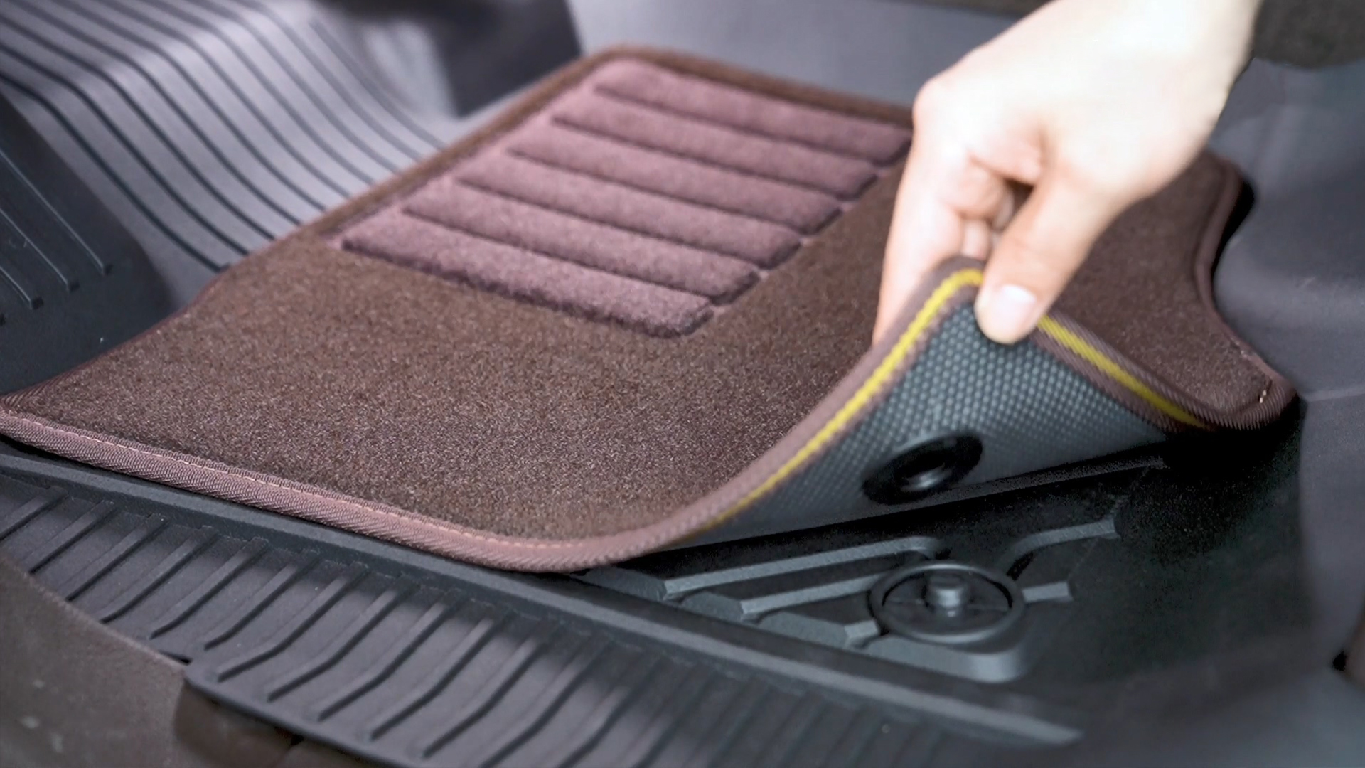 ▲原车的贴合度超级高,据说是给诸多主机厂做配套,数据可以直接采集,比起丝圈这种机械裁剪和大包围伪立体的脚垫来说,极度舒适!