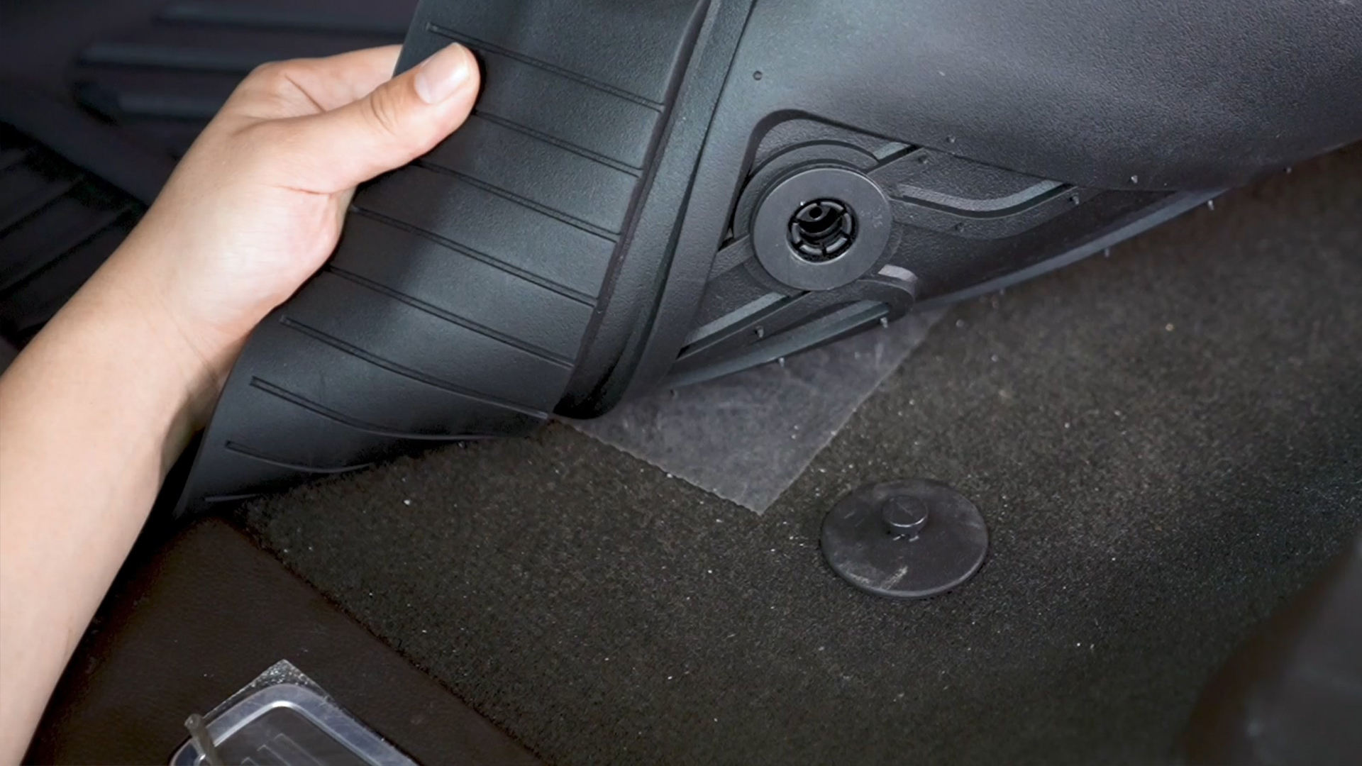 ▲原车自带了卡扣,很多丝圈没有卡扣的话这部位会翘起来!