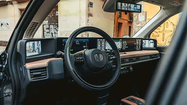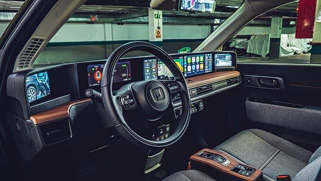 作为A0级都市两厢车,仪表台几乎被液晶显示屏霸占,反光镜被小到不能再小的摄像头与至于车身两端的液晶屏幕所取代,这种做法可以有效降低风阻。本田将Honda E的内饰设计风格定名为“家庭休息室”因此你会发现整台车内饰大量运用了织布材料与假木板,液晶仪表下方节约出来的位置被设计成了平直的电视柜而贯穿式空调出风口就在电视柜的立面。这样的设计的确有一种家居温馨风的感觉。即便是空间利用大师,作为小型两厢车,他的后备箱空间仅为171升,后排座椅放平后只勉强达到了860升,因此海外车迷们认为这台车只适合两个人乘坐。有意思的事情是本田将整台车的车顶做的很高,即便是人高马大的欧洲人满载四人情况下也不会觉得腿部空间局促、头部空间紧张。