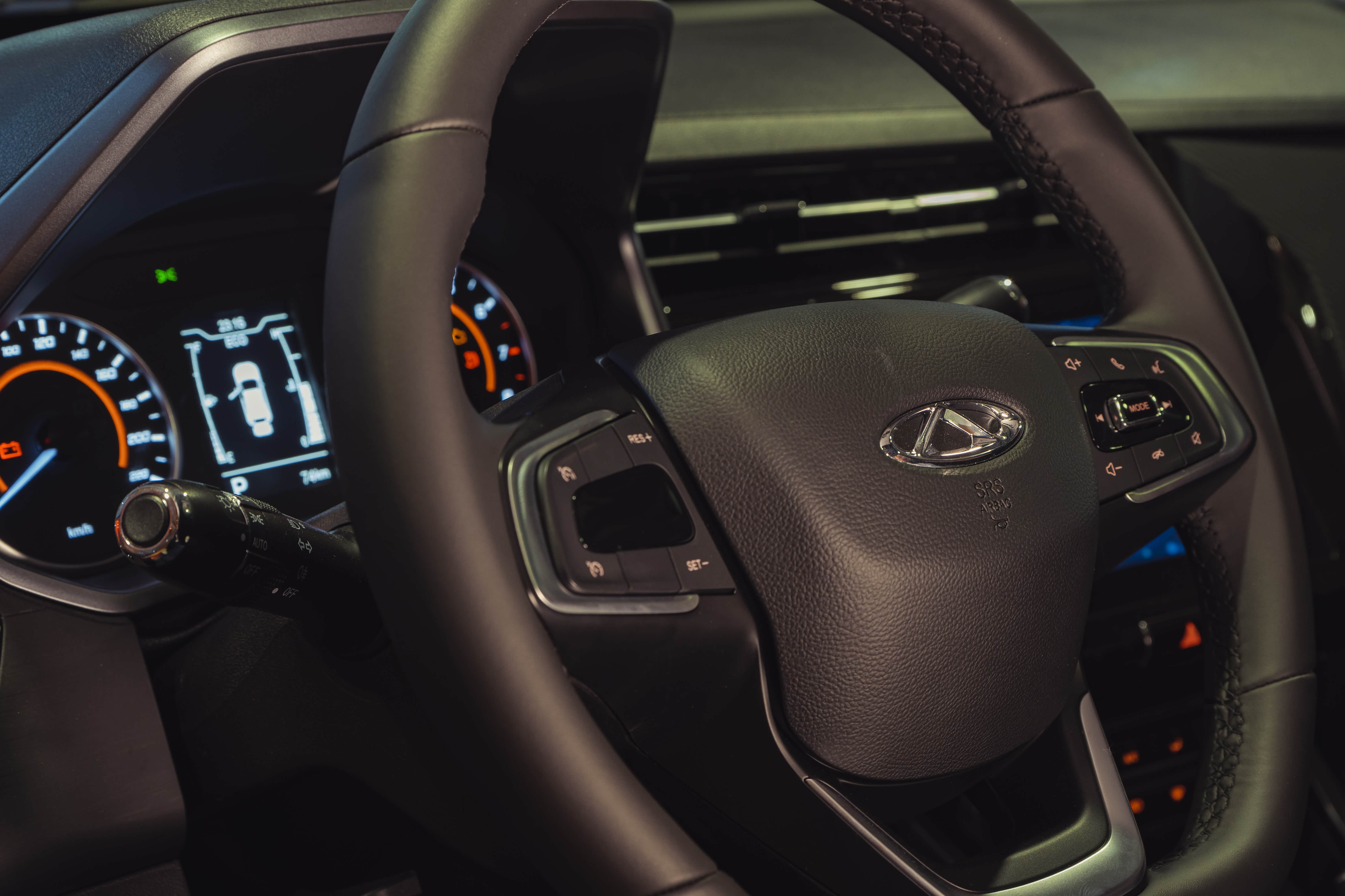 瑞虎3x PLUS的内饰也焕然一新。中控台微微偏向驾驶者,加入了仿碳纤维的纹路设计。9英寸中控触屏周围加入了黑色高亮装饰。另外配备了三幅式平底真皮多功能方向盘,直径小巧,以皮革材质包覆,握感优秀,稍微激烈的拐几个弯,手心微微出汗,也不至于打滑。