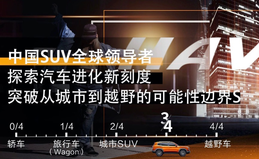 哈弗汽车通过对市面上车型特点进行整理和归纳,将轿车和越野车之间再划分出3个细分定位,旅行车、城市SUV,以及哈弗大狗所代表的全新品类。在此之前,并没有明确介于城市SUV和越野车之间的车型,SUV在这些年的发展中还在逐步向城市化妥协,导致与越野车之间的距离越拉越大。虽然这变化更能适应消费者的主要使用场景,但在大谈追求自由与突破约束的今天,却不足够慰藉新生代消费者的心灵。