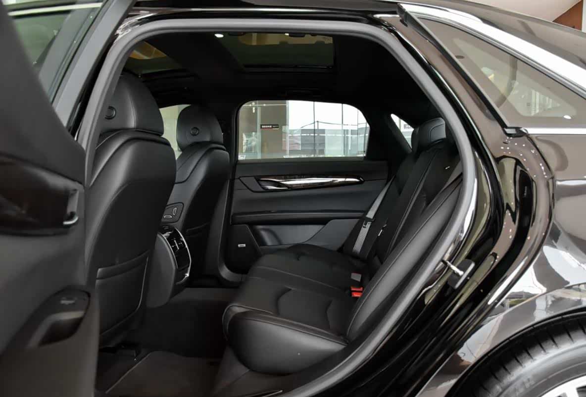 另外再来简单聊下CT6的空间表现,除了最低配版车型在使用仿皮座椅外,其余车型均配备真皮材质的座椅,整个乘坐的舒适性很高。另外后排的乘坐空间真的很宽裕,以180cm的身高为参考,腿部空间仍能达到3拳以上的余量。