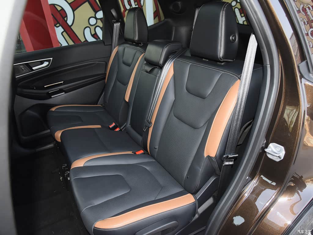 尾部造型变化并不大,车标下方增加了EDGE的英文标识,车标则是和镀铬饰条融为一体,下方的双边双出排气是福特对于运动的一种执着。