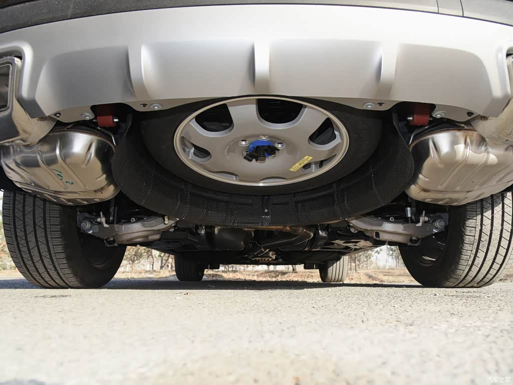 锐界因为是一款带有第三排座椅的SUV,所以一直都是采用这种底挂式备胎,悬架方面,后悬架采用了铝合金的下控制臂,减轻了簧下质量。