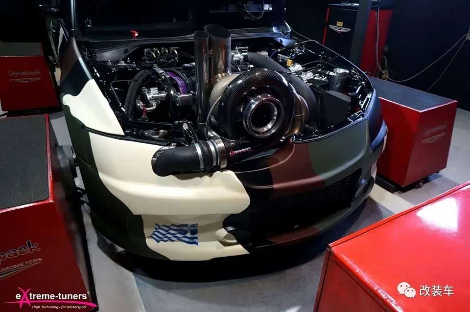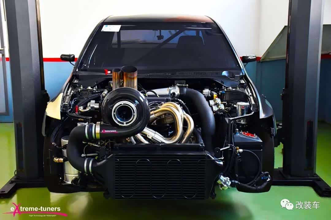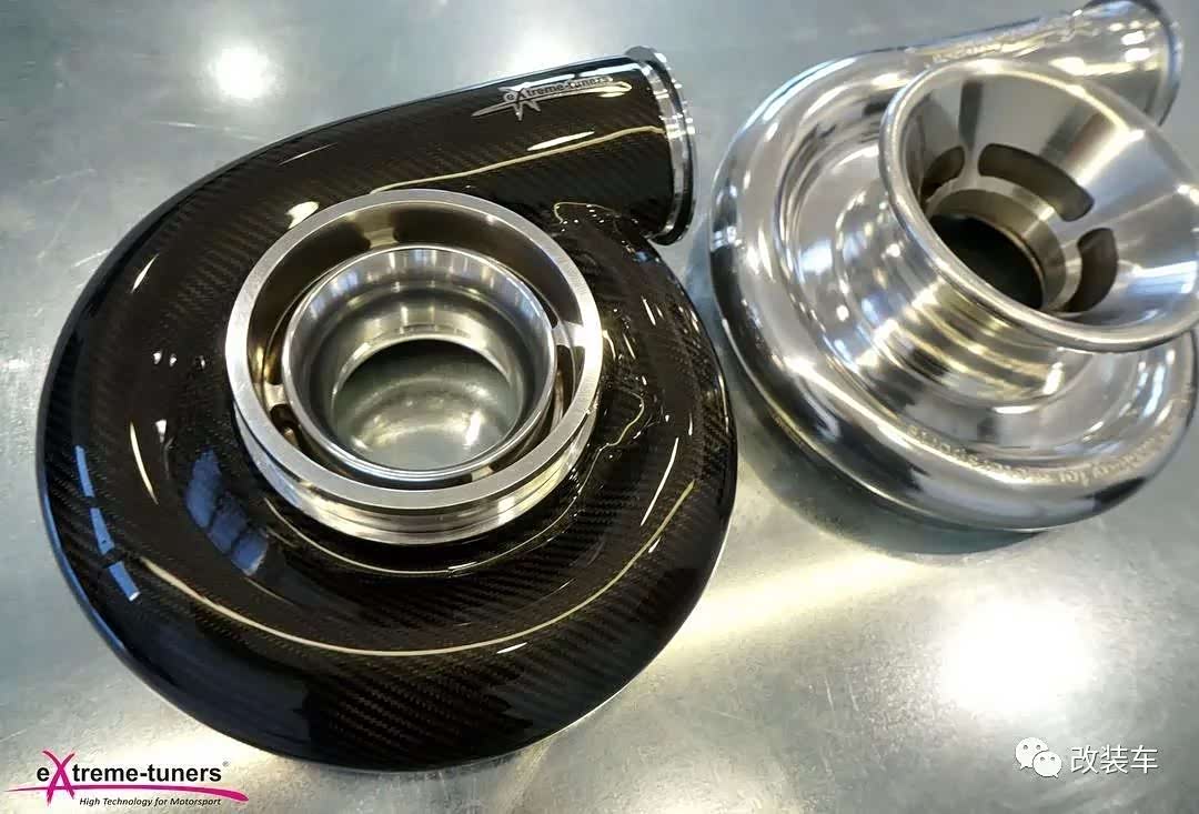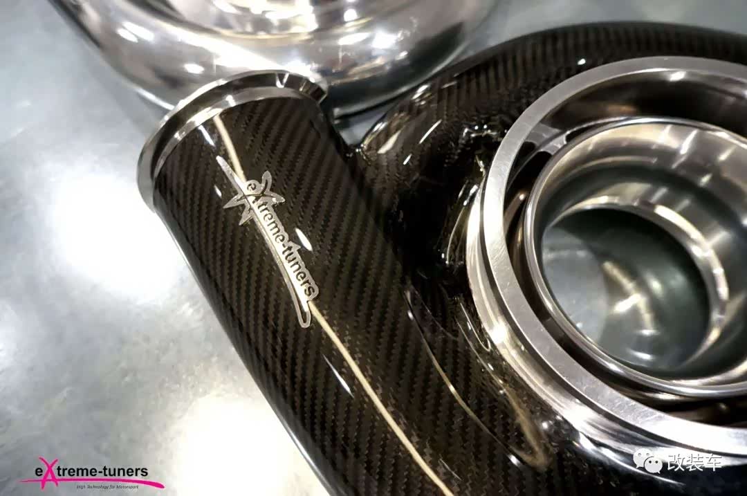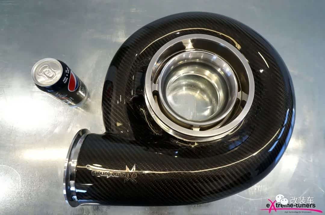 为了继续压榨性能,他们甚至丧心病狂地带来一颗更大的涡轮,外壳还包裹上一层碳纤维,就像给小猪佩奇戴上黑化面罩。