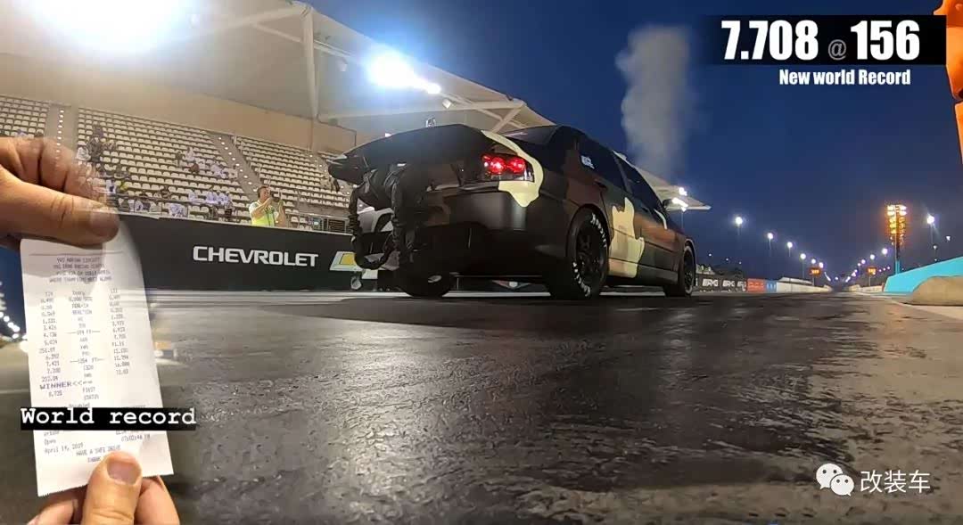 即便如此,还是创下了新的记录,跑完1/4英里仅用时7.708秒,相当于用你喝一杯水的时间,跑完了402米。