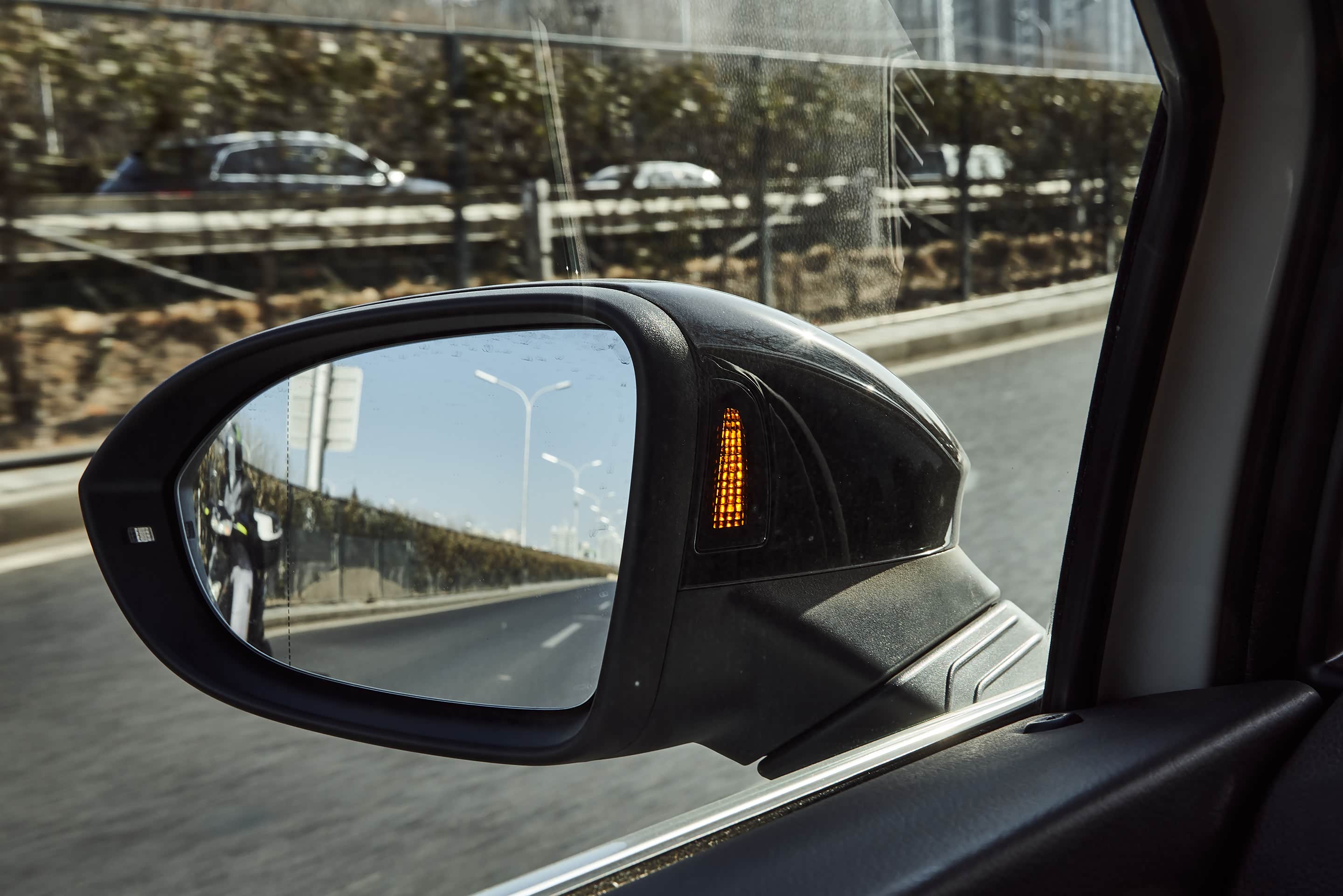 并线辅助系统的警示灯设置在了后视镜的正侧面,长条状,还是比较醒目的,很好的提示作用,建议以后生产的车型都配备这个功能。