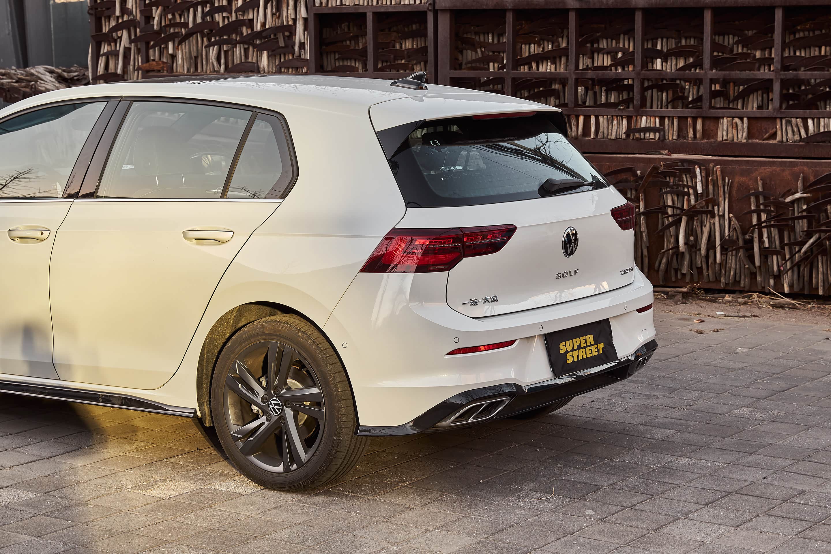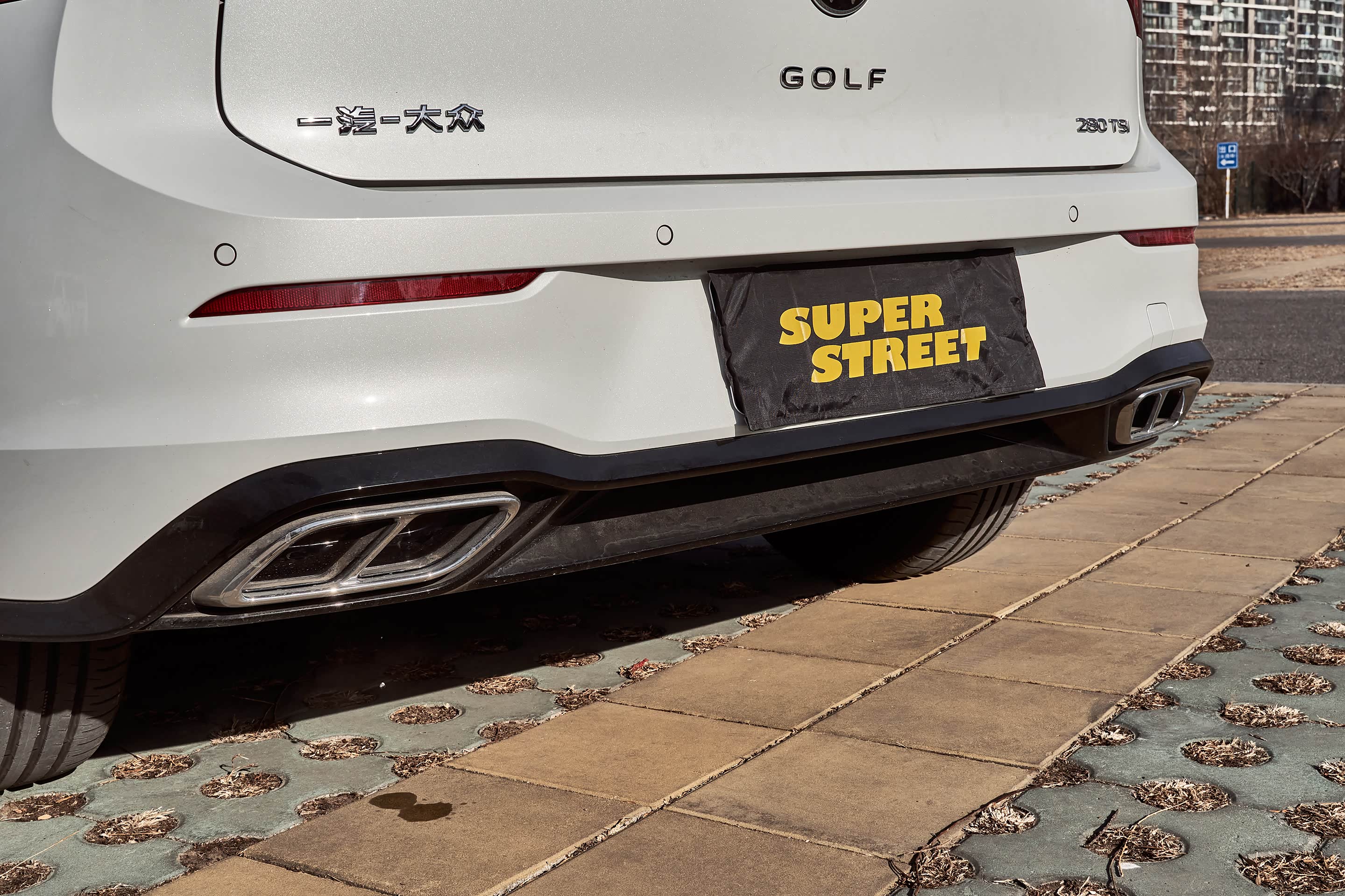 R-Line版本的排气尾口是双边四出的方口样式,不过只是装饰,尾口部分是封闭的,真正的排气尾口是在内侧的。不管怎么说视觉效果够犀利就可以了,现在很多车型都是这个思路来设计的。既省钱又美观,何乐而不为呢。
