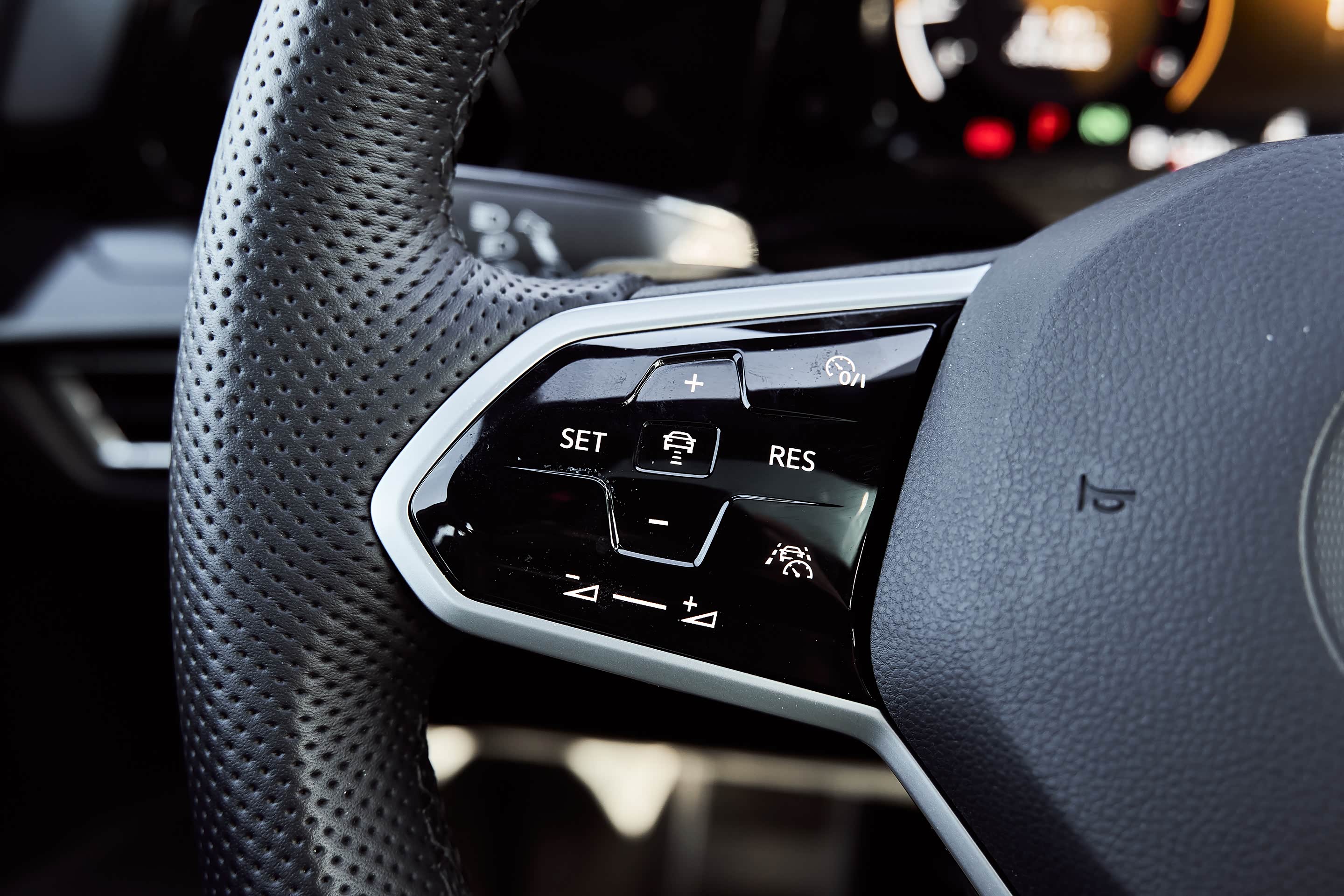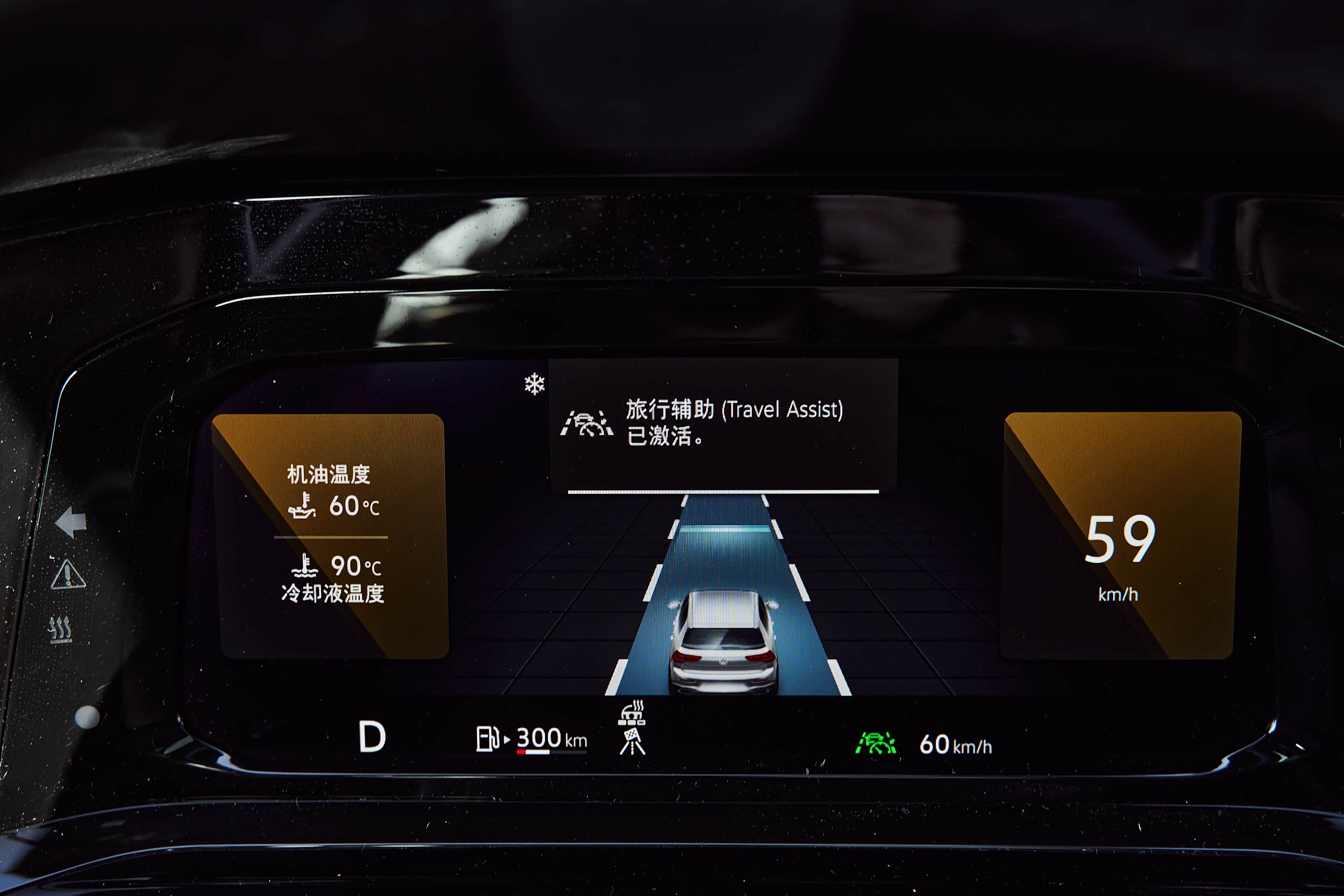既然称为全新数字高尔夫,那就说说他的高科技配置,方向盘的左侧是旅行辅助系统的功能区,简单说就是自适应巡航系统、车道保持系统、前车测距自动刹车系统的组合。在长途行驶时可以辅助驾驶车辆,可以更轻松、更安全的保驾护航,我在北京四环测试了一下,由于地面标志线不是很清晰,有时会识别不到车道,看来智能系统不仅需要车企的努力,也需要市政更好的维护路面设施才能更好的使用高科技的功能。