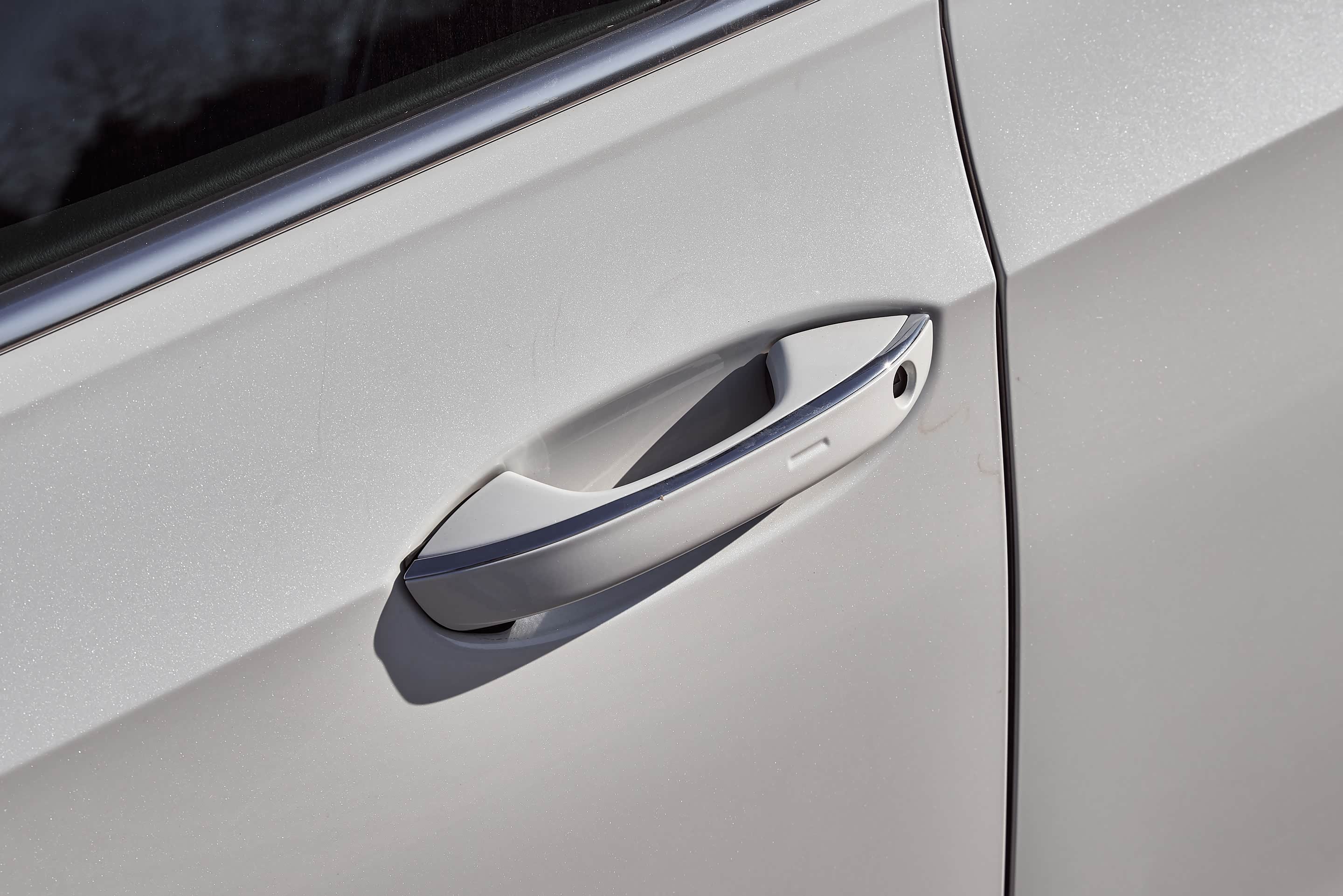带有感应功能的门把手,只要随身携带车钥匙,走进车辆直接拉门就可以开启门锁。把手上部加入的镀铬边框很有质感,在夜晚的时候,门把手内侧隐藏了灯光照明,下方还可以投射在地面GOLF的标识,很有身份感。
