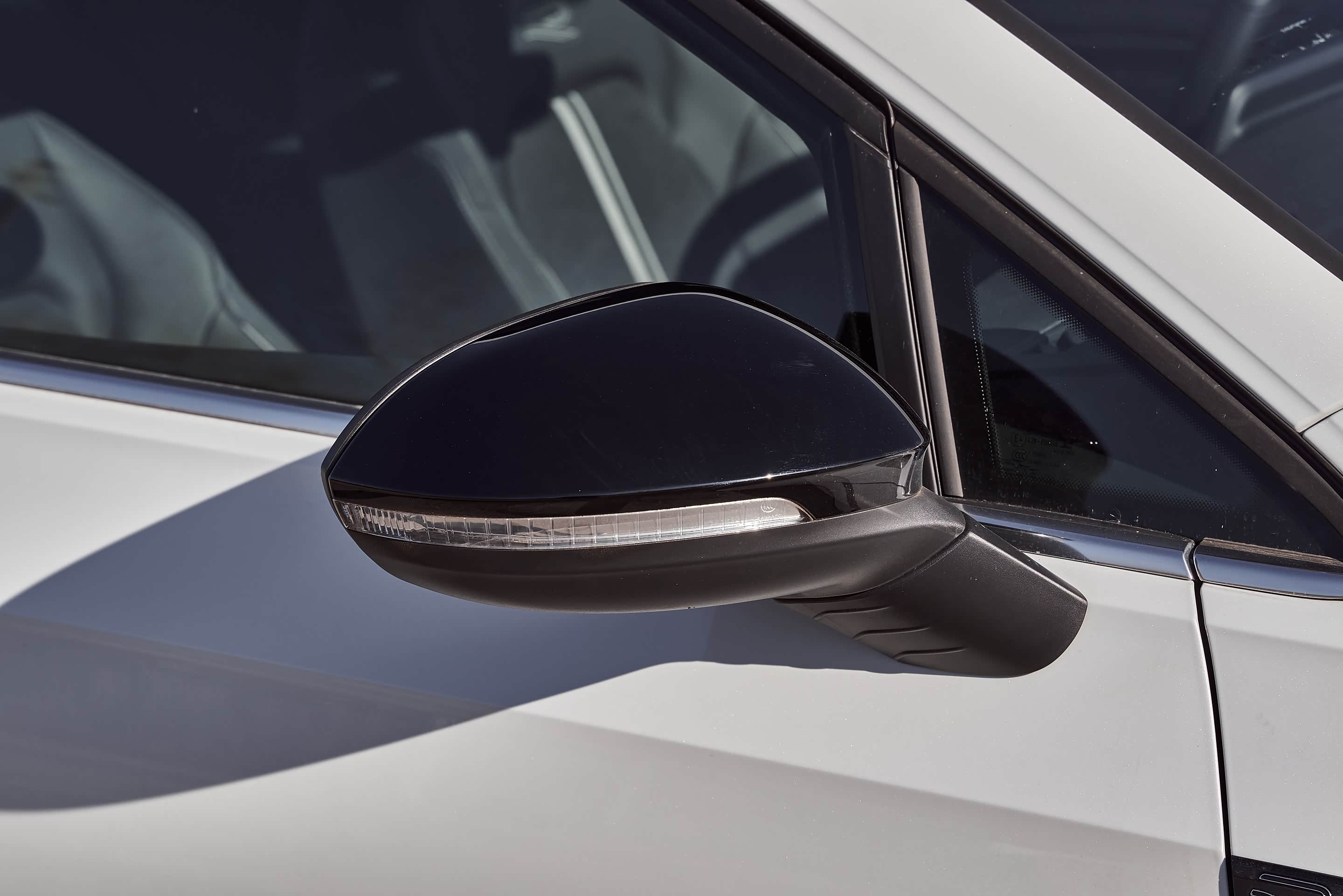侧面呢,有两处变化,黑色亮面的后视镜外壳和底部的侧裙,也让白色车身不再单调,当然你也可以通过后期改装碳纤维材质的外观件,让它更有特色。