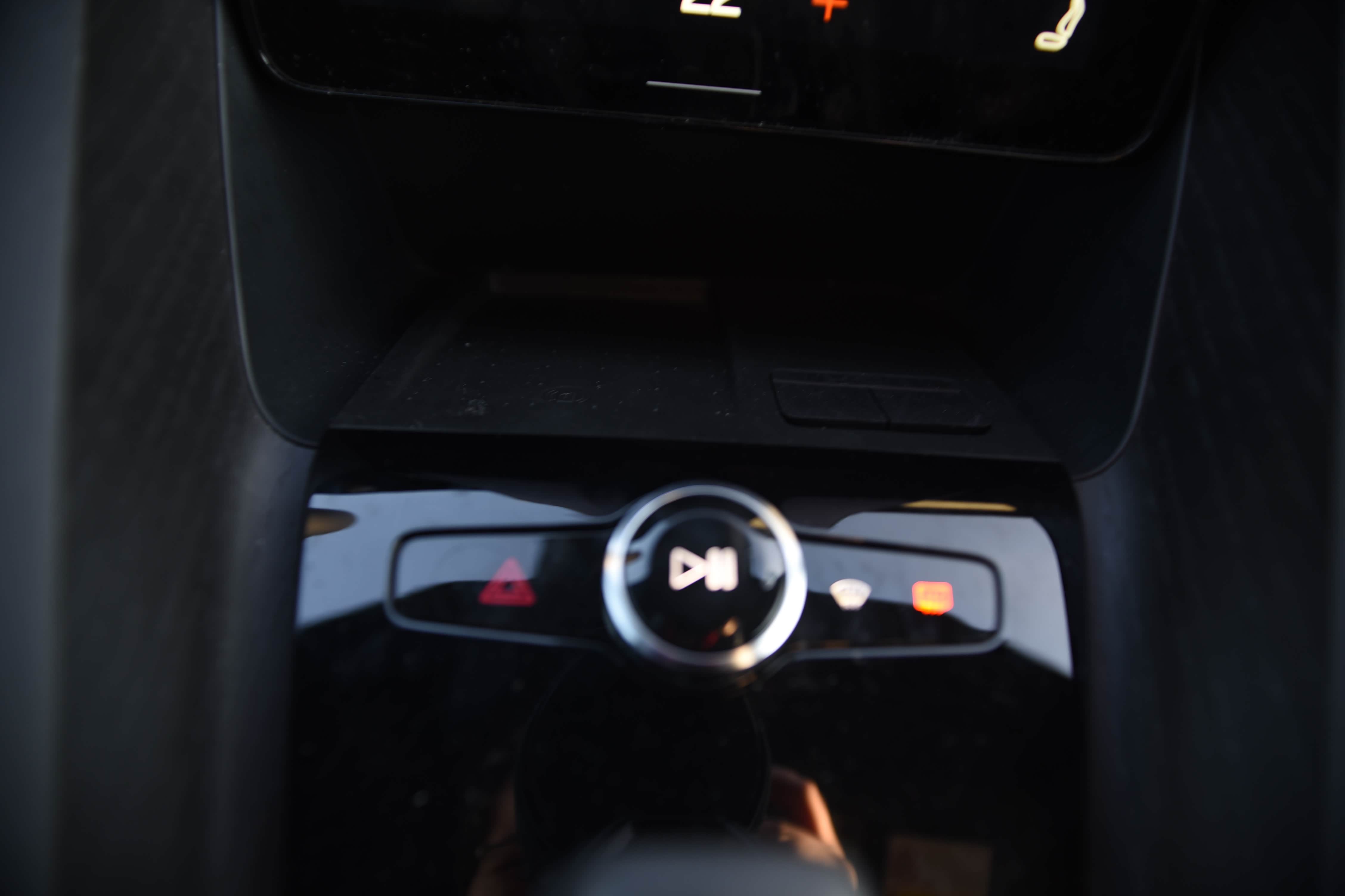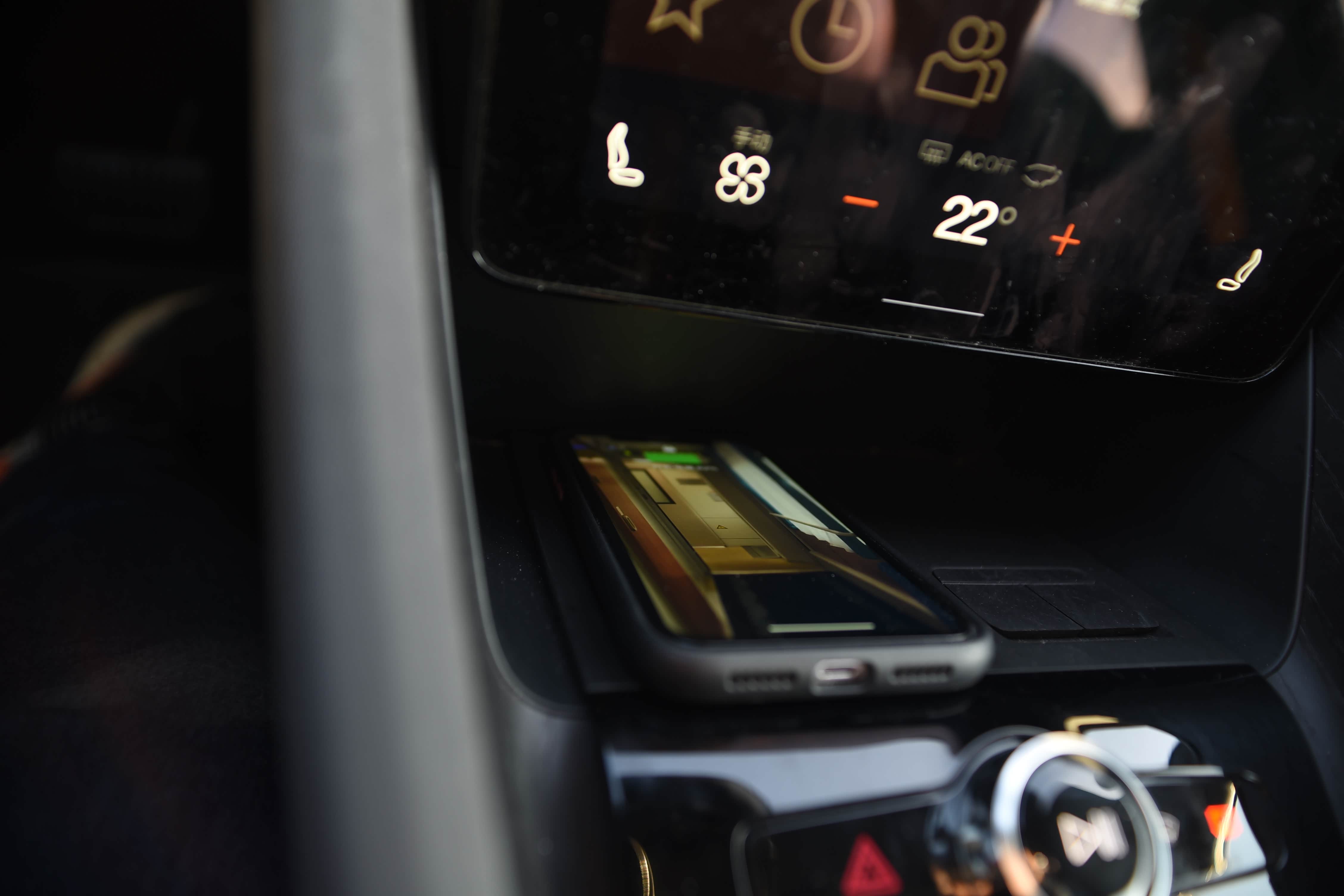 中央扶手前边配有无线充电面板、2个USB接口和中控屏控制按钮、信号灯、前后玻璃除雾按键等功能,使用起来十分便捷。由于此款车是性能车,汽车电量消耗十分快,且手机充电也需要汽车电池的提供电量,建议不要在汽车上给手机充电,驾驶时最好带快移动电源给手机充电。