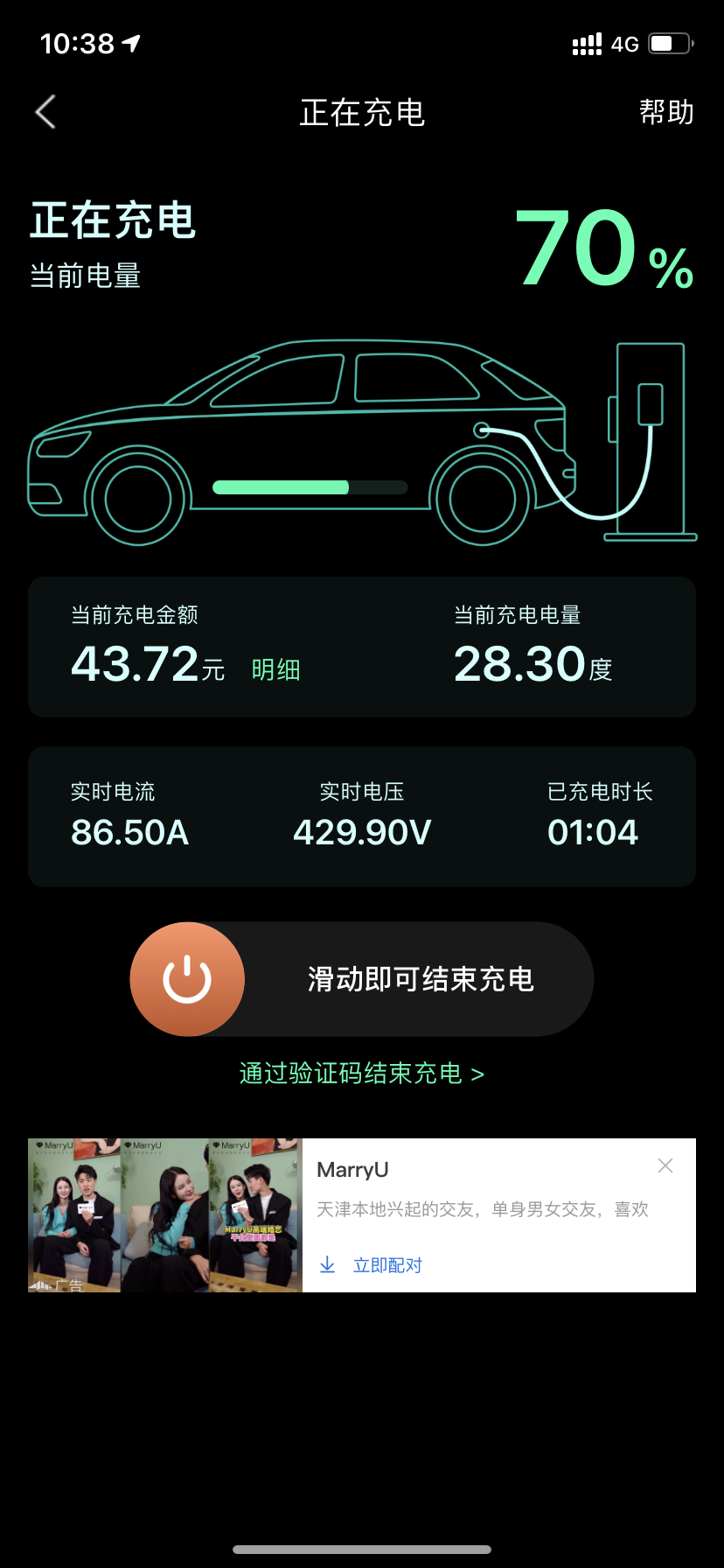 充电方面,利用中国普天充电桩充电,电量从30%-80%充电速度基本在20-50km/h上,比慢充也快不了多少,不建议用中国普天充电桩充电。