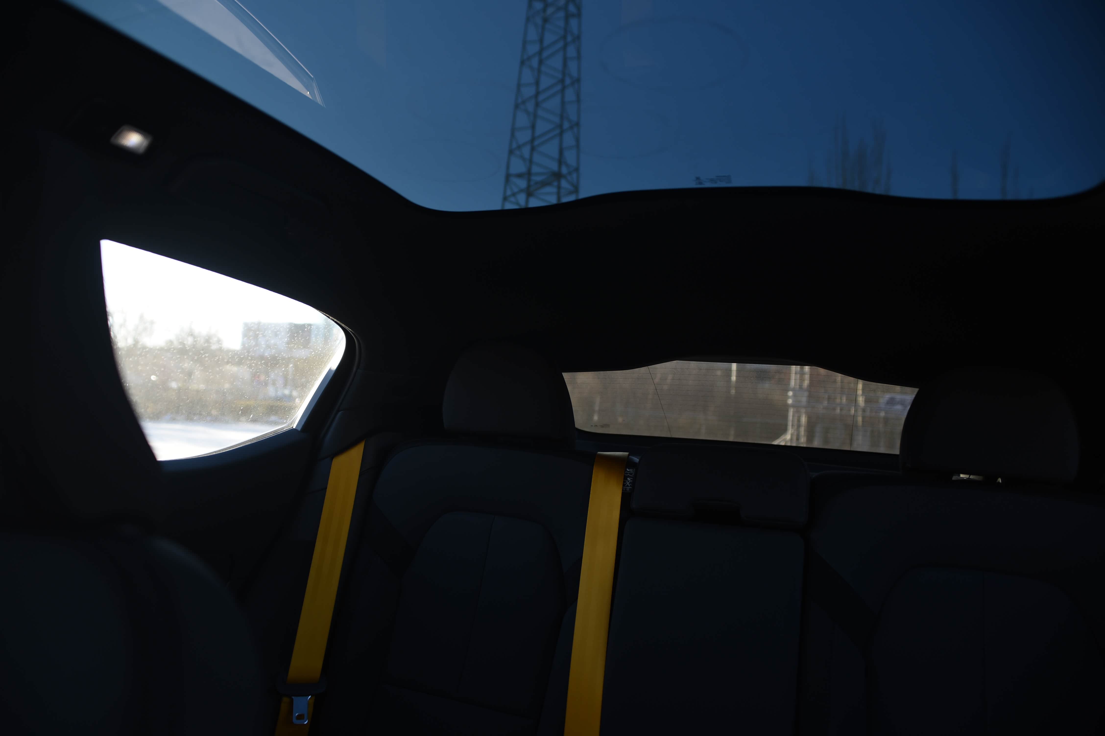 一体式全景玻璃天幕,提升车内空间感和驾驶氛围。玻璃天幕的夹层玻璃可防紫外线,无需遮阳板也可保持车内的舒适性。此外,可投射在车顶的极星星标,更加凸显极星2先锋纯粹的设计理念。