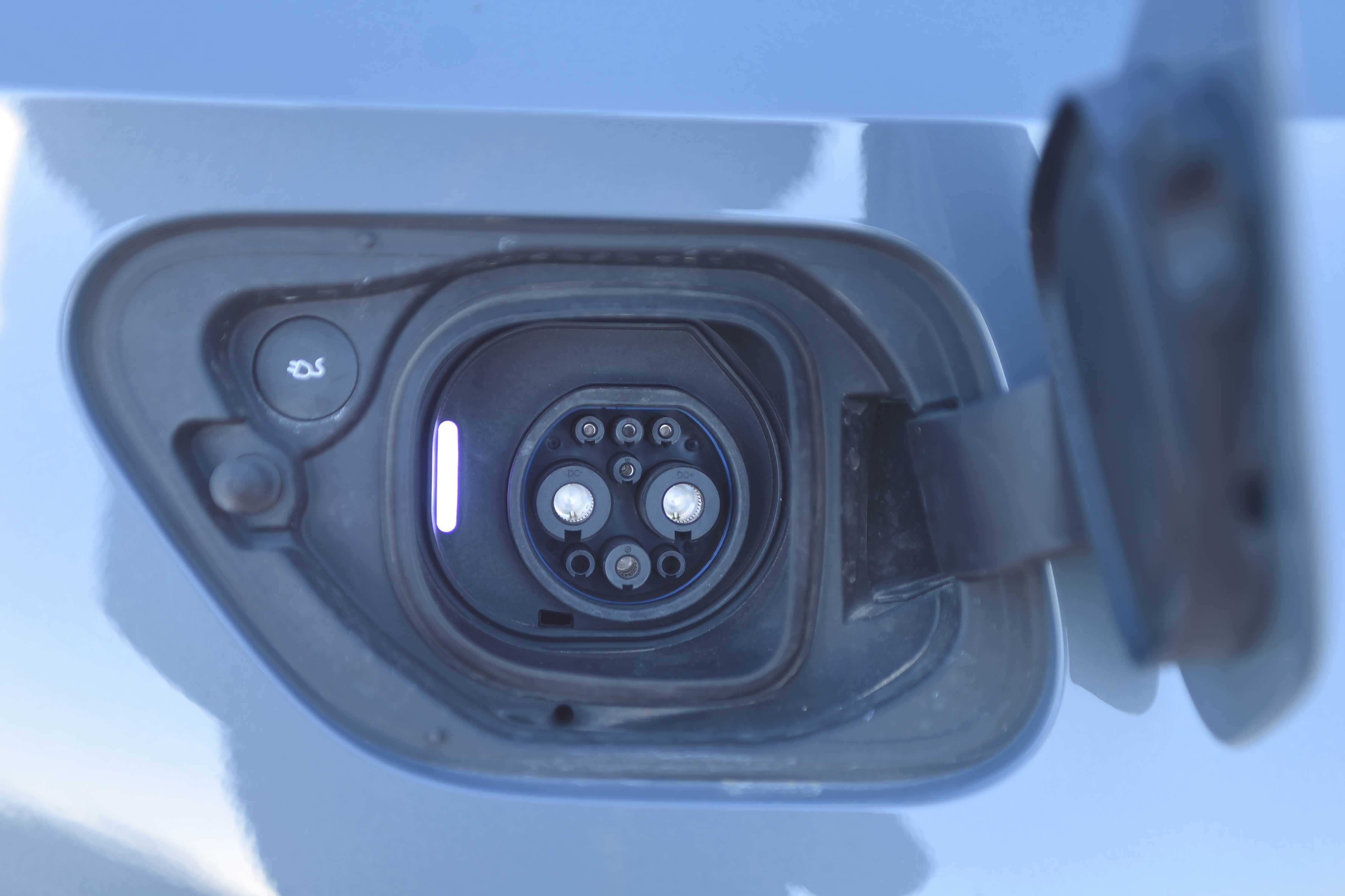 左右后翼子板分别配有慢充和快充充电接口,并且快慢充电接口带有快速切断电源按键,这样可以提高汽车充电时的安全性。