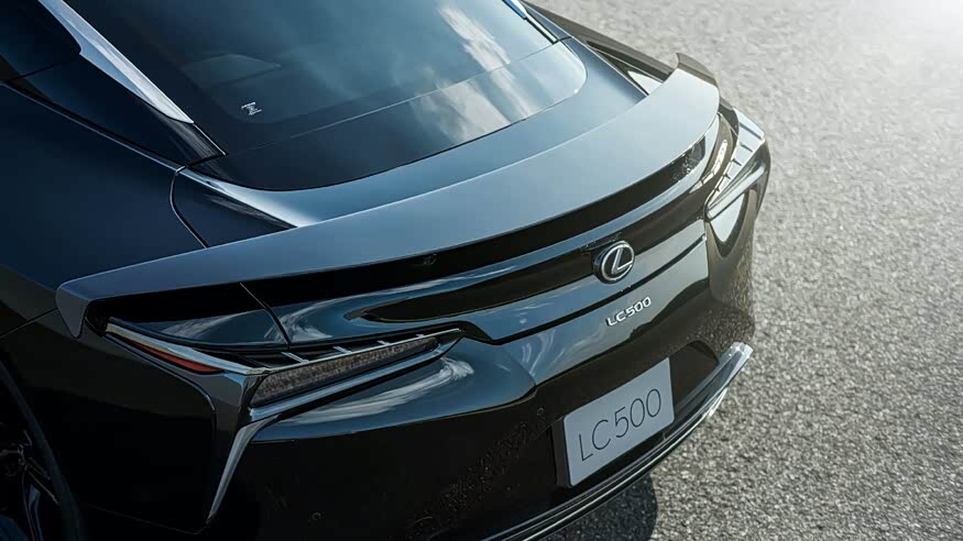 此外厂家还强化了新车的底盘操控性以及空气动力学性能。外观上搭载了空气动力学出色的碳纤维套件,让新车拥有更佳的稳定性。最显眼的当属大尺寸的碳纤维尾翼,据悉该尾翼是在研究红牛空中竞速世界锦标赛的飞机之后才设计的,不仅顺应LC 500尾部的弯曲度,并且在拐角处的加入低垂鸭嘴设计,从而消除沿车侧面气流产生的湍流。
