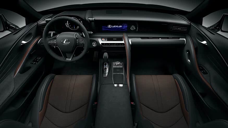 内饰配色同样以黑色为主,并加入马鞍棕色皮革、碳纤维材质进行点缀,豪华感、运动感非常强烈,并且座椅、方向盘与换挡杆还采用Alcantara材质进行包裹,带来极其出色的触感。同时一体式运动座椅的配备也带来更加的支撑性和包裹性。配置方面,新车还搭载了抬头显示器、915瓦的Mark Levinson音响系统和SmartAccess卡钥匙等配置。