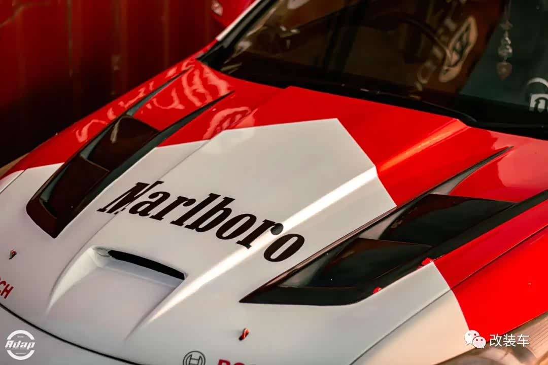 随着90年代反广告法在欧洲乃至整个世界的开展,大家都开始“禁止”香烟类的赞助广告,万宝路的商标再无出现在赛场上,也正因这样这套涂装也成为了经典。虽然万宝路已经不会再出现在赛场,但它一直活在了车迷们的心中,像这辆8代的本田雅阁,贴上万宝路涂装后瞬间就让人回到了本田最热血的年代。
