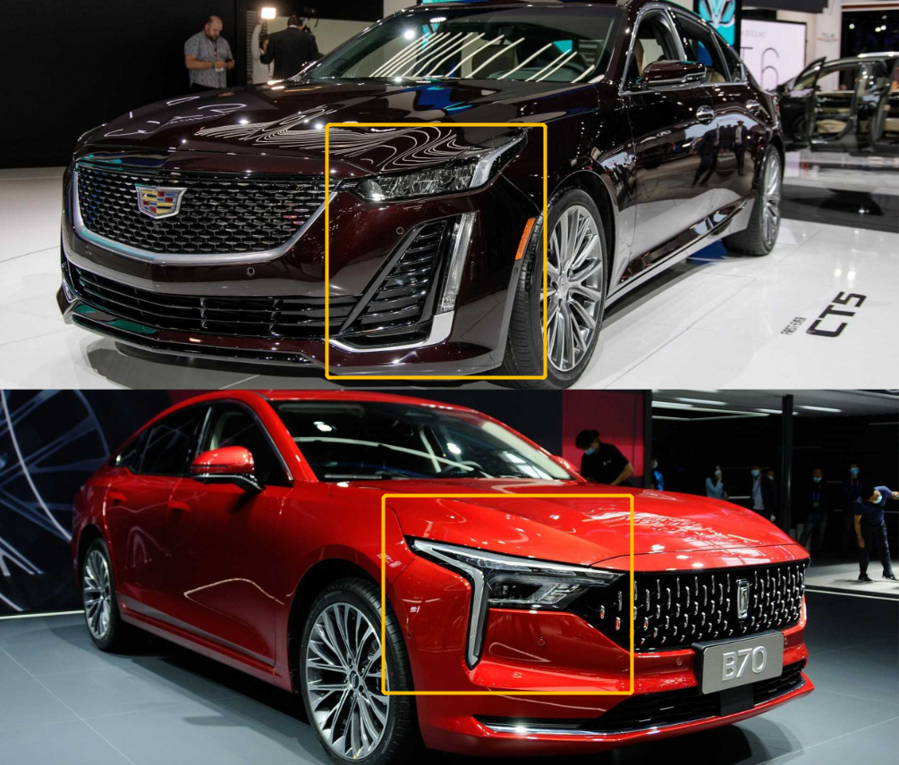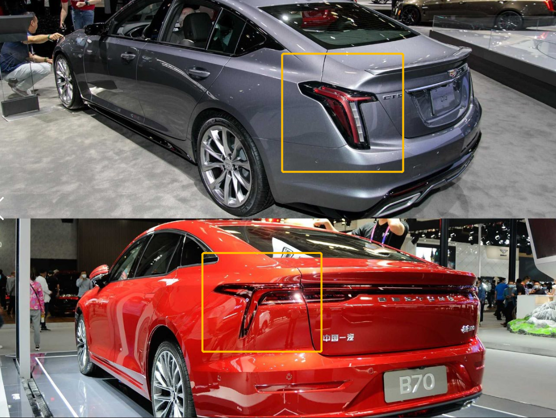 国内自主品牌近几年逐渐从学习仿制过渡到了自我创新的阶段了,这是一个好现象。说明各大主机厂有能力也有信心在汽车市场上去创造更多的价值。不过,目前一些自主品牌的单个车型还是能看出友商老车型的影子,例如---近期刚上市的新款奔腾B70。俗话说,模仿是最好的恭维形式,但其实这种复制对任何一家公司来说都没有好处。我们还是很容易看出该车应用了凯迪拉克CT5早已过时的设计,尤其是头灯和尾灯的部分。