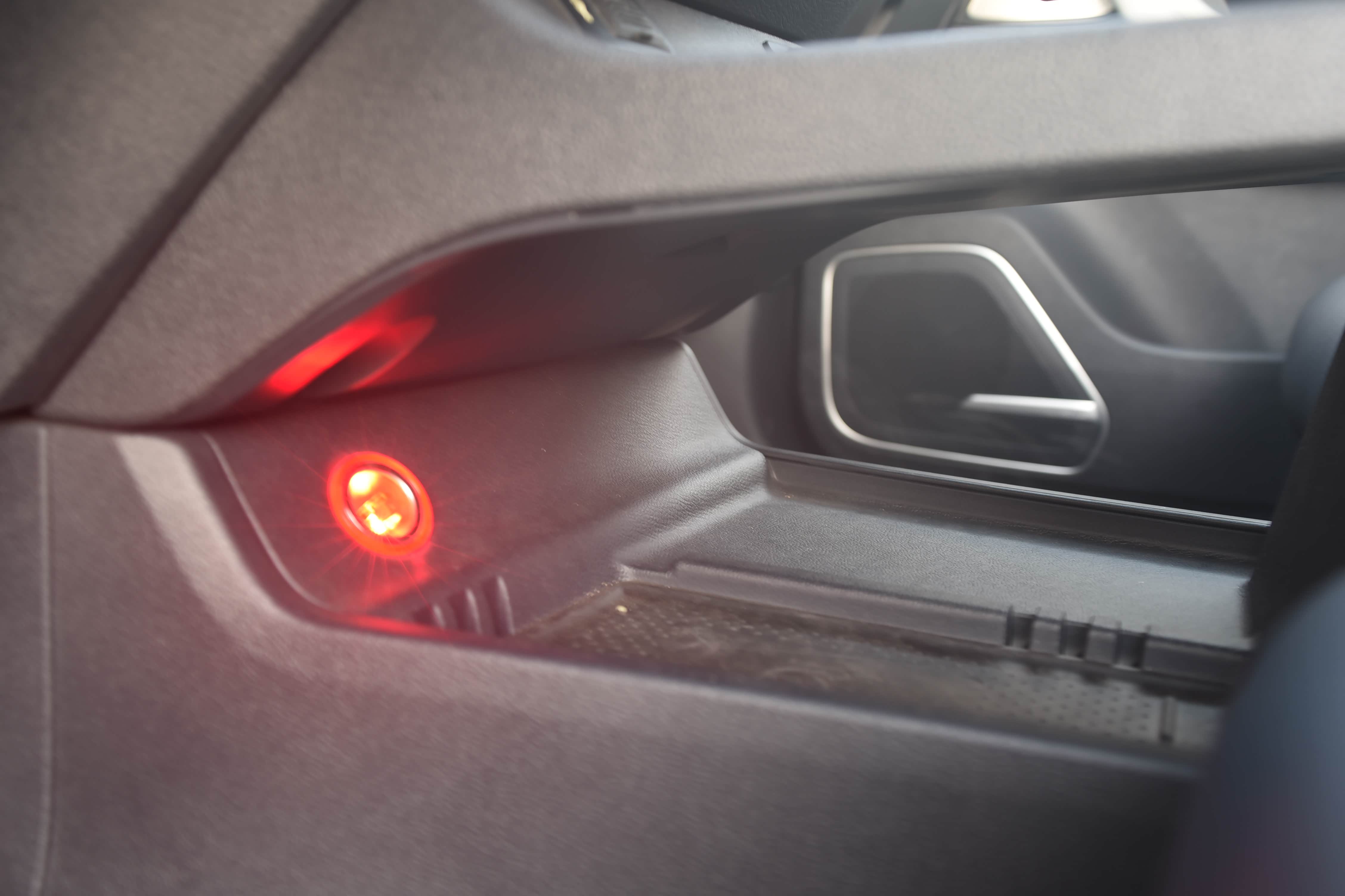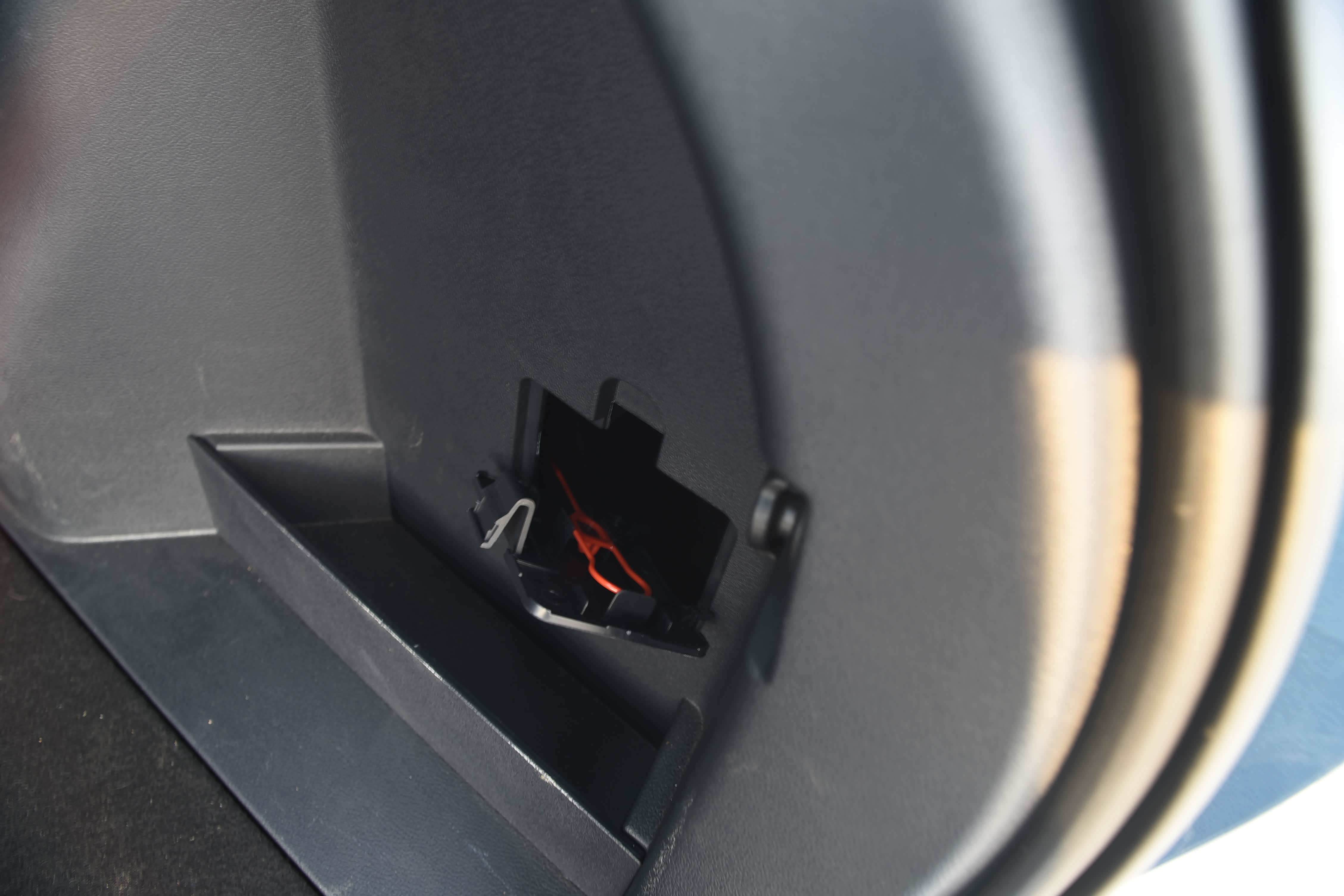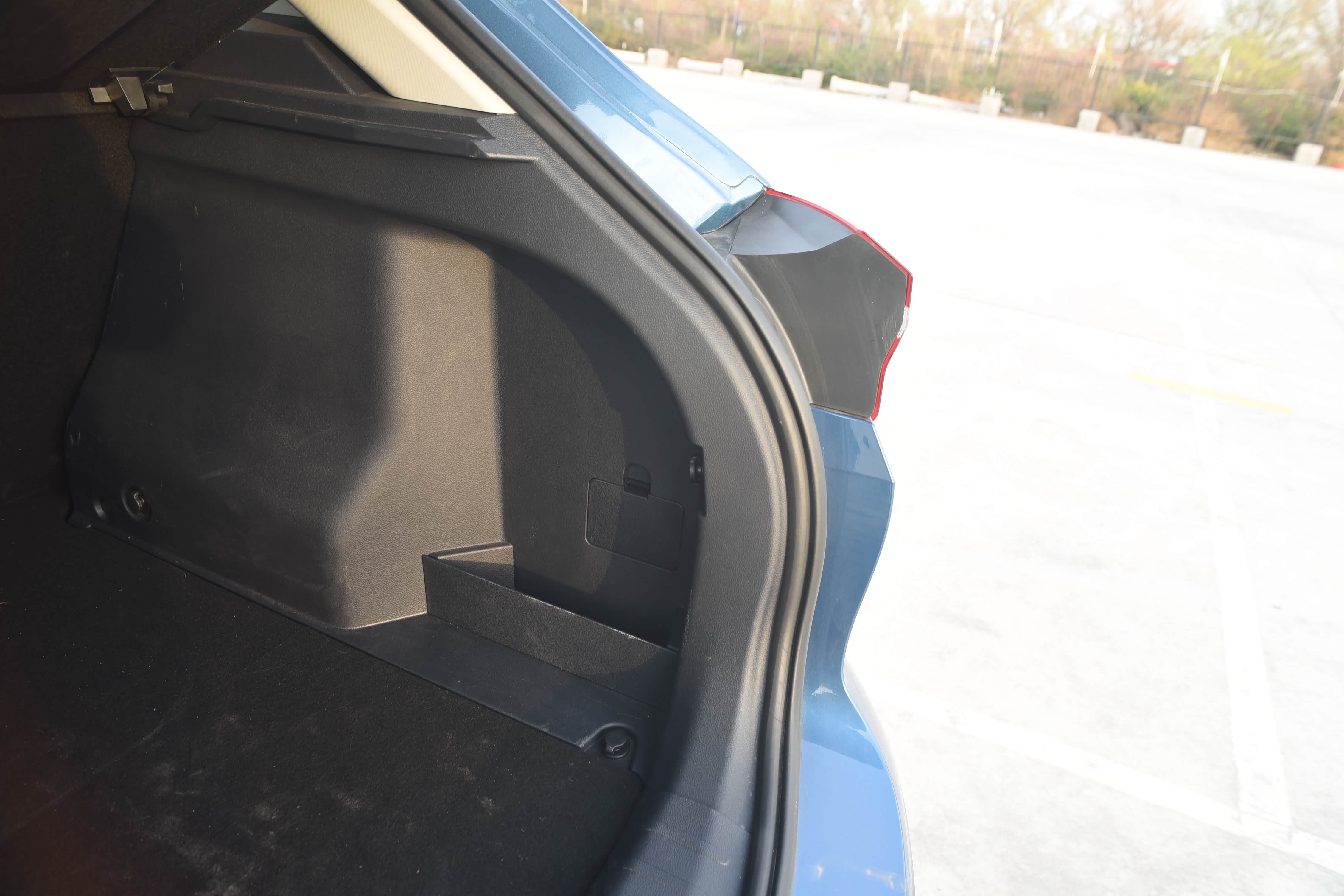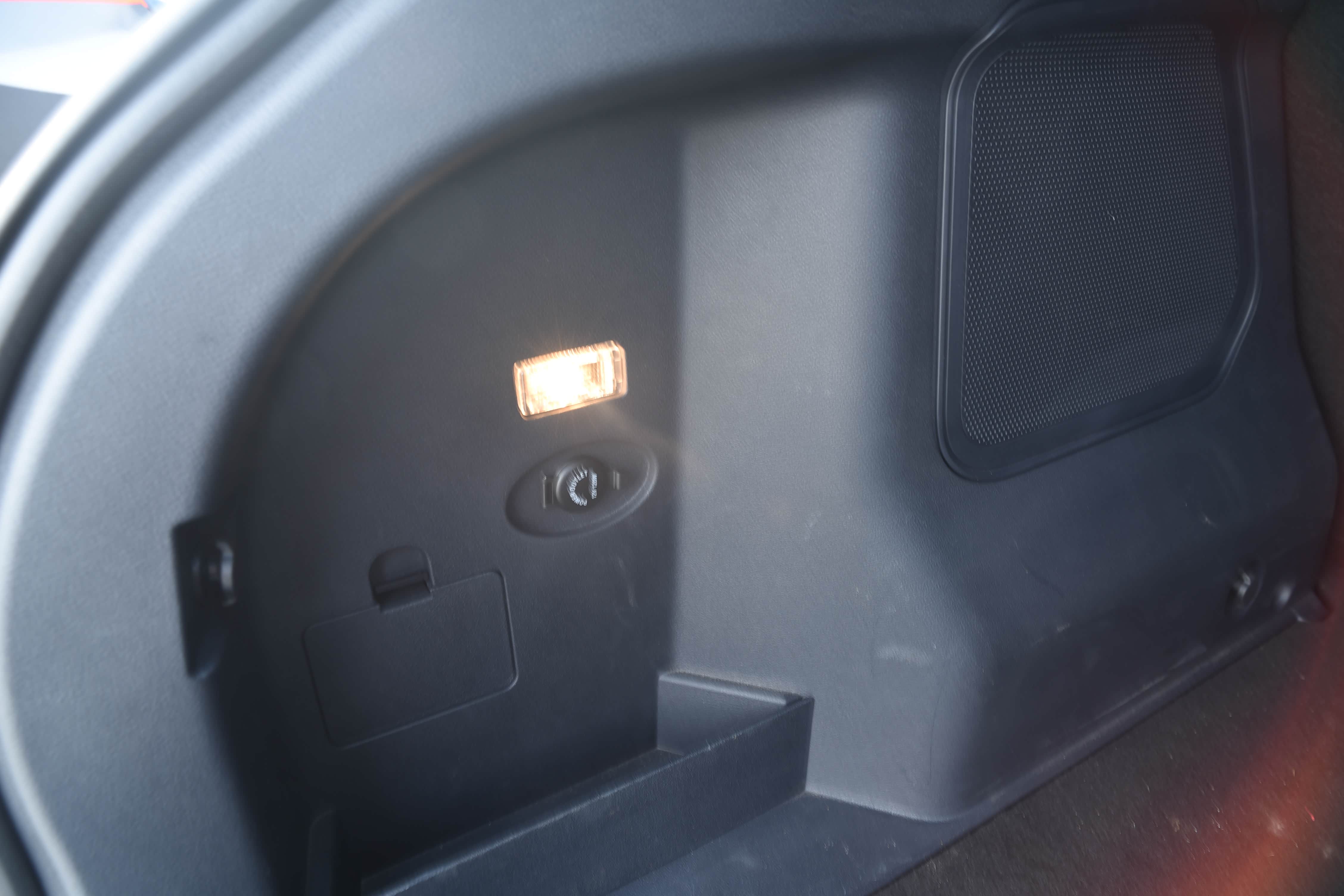 后备箱左边配有12v 电源接口,可以放个车载冰箱;右边设有小储物盒,可以放易摔、易漏的物品,使用起来十分便捷。