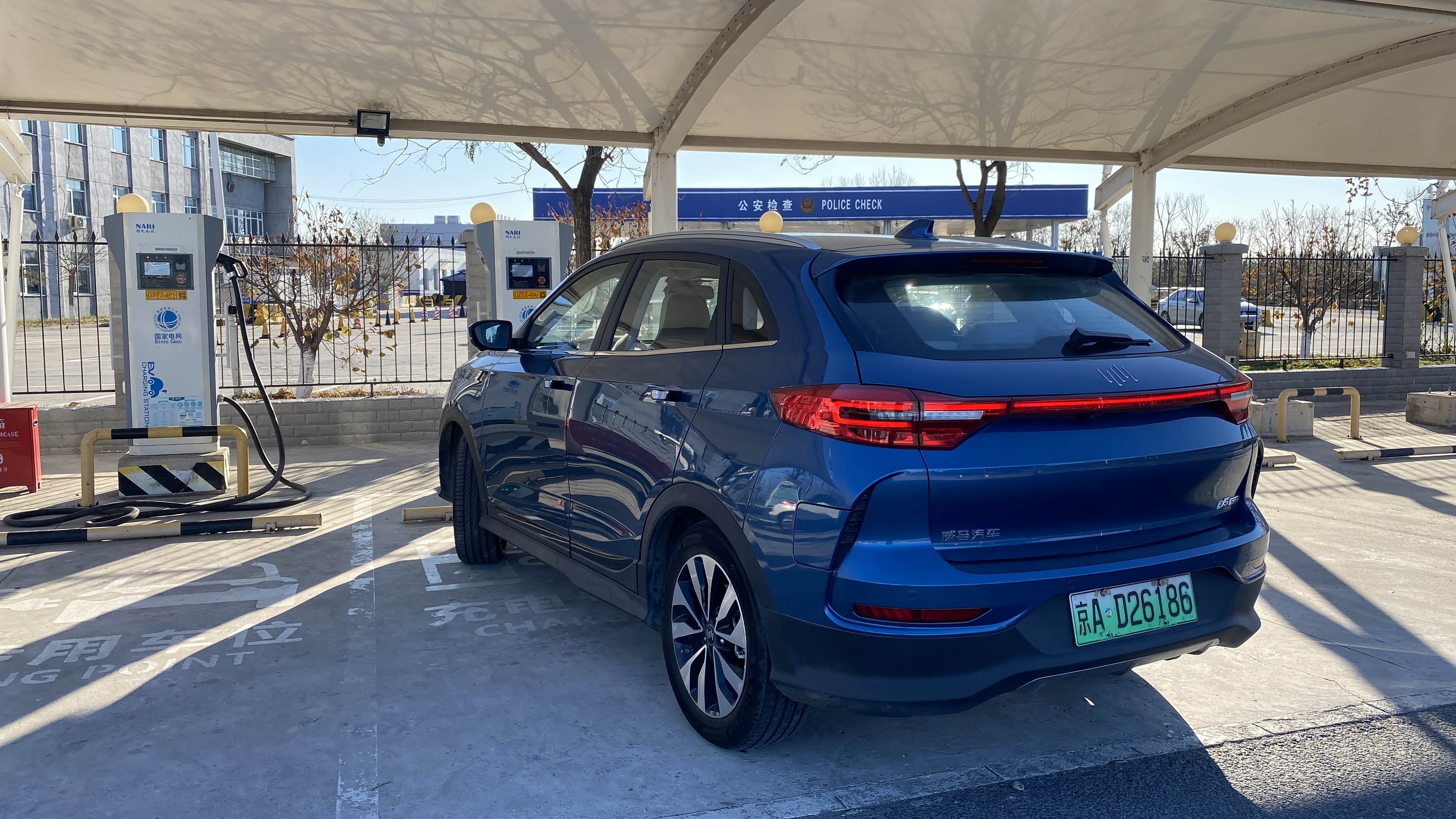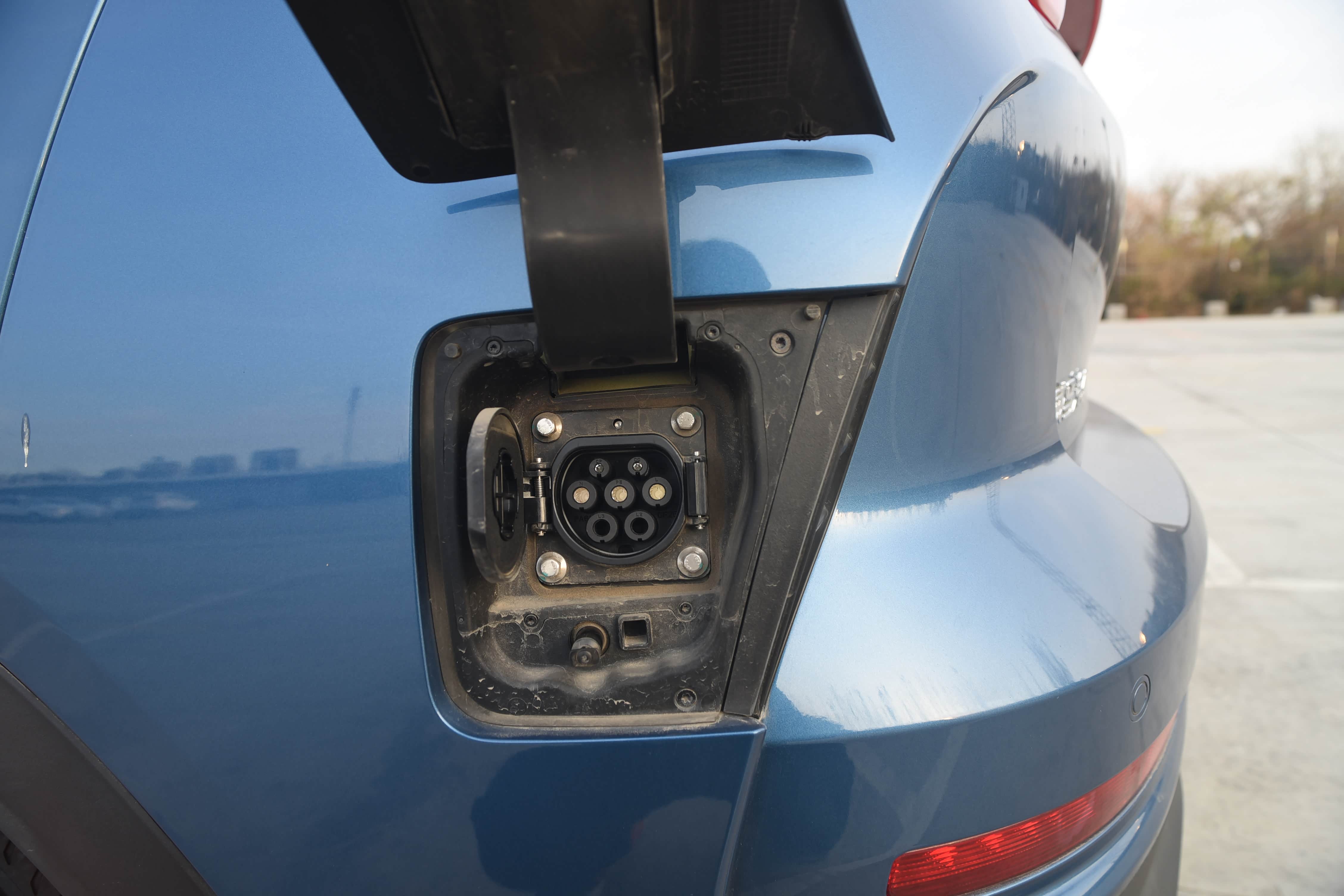 威马LOGO正下方配有快充充电接口,左后翼子板配有慢充充电接口。
