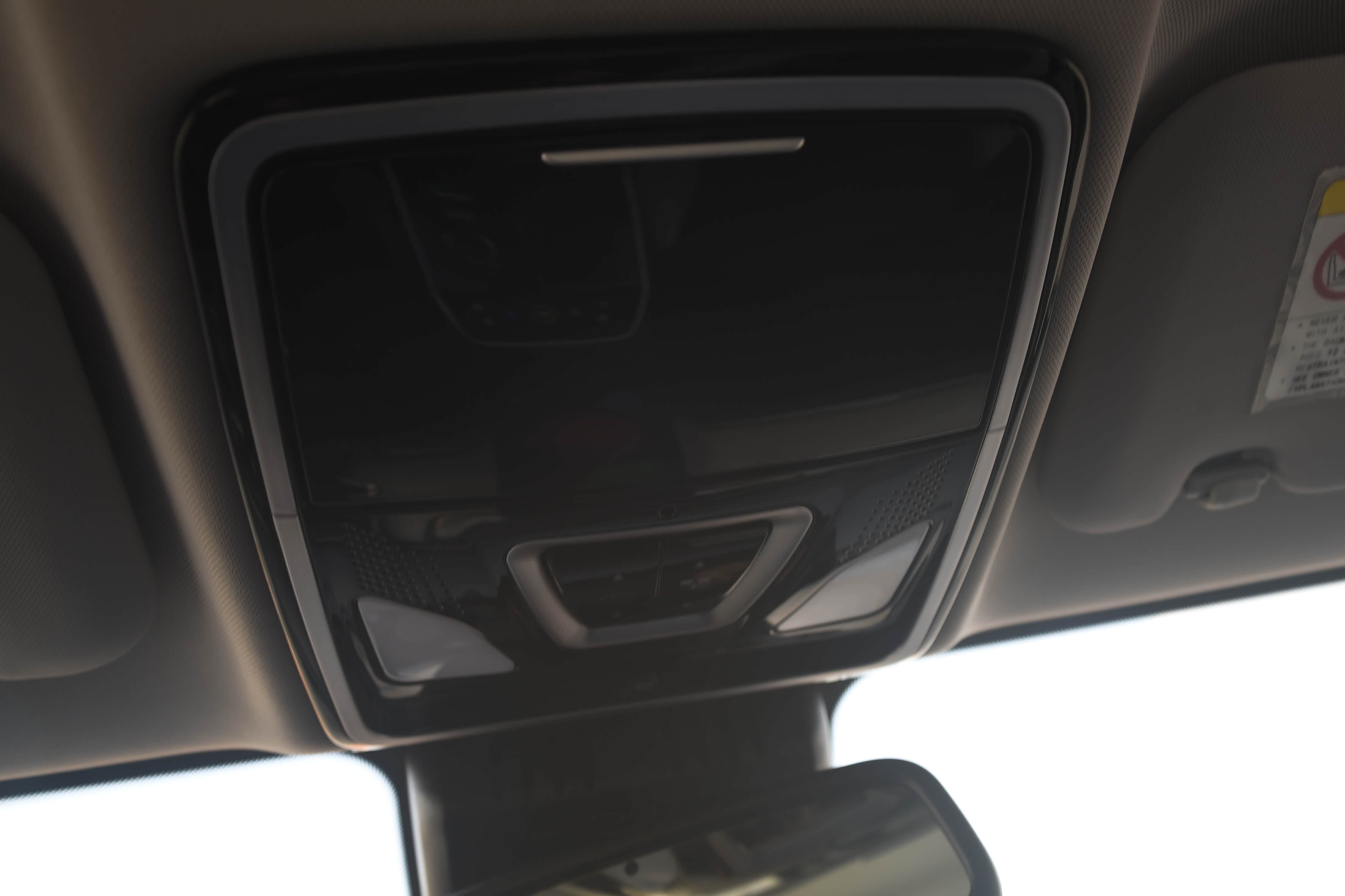 汽车顶部配有2枚呼吸式LED吸顶灯、天窗开启按键,尤其配有眼镜盒,这样设计比较人性化。