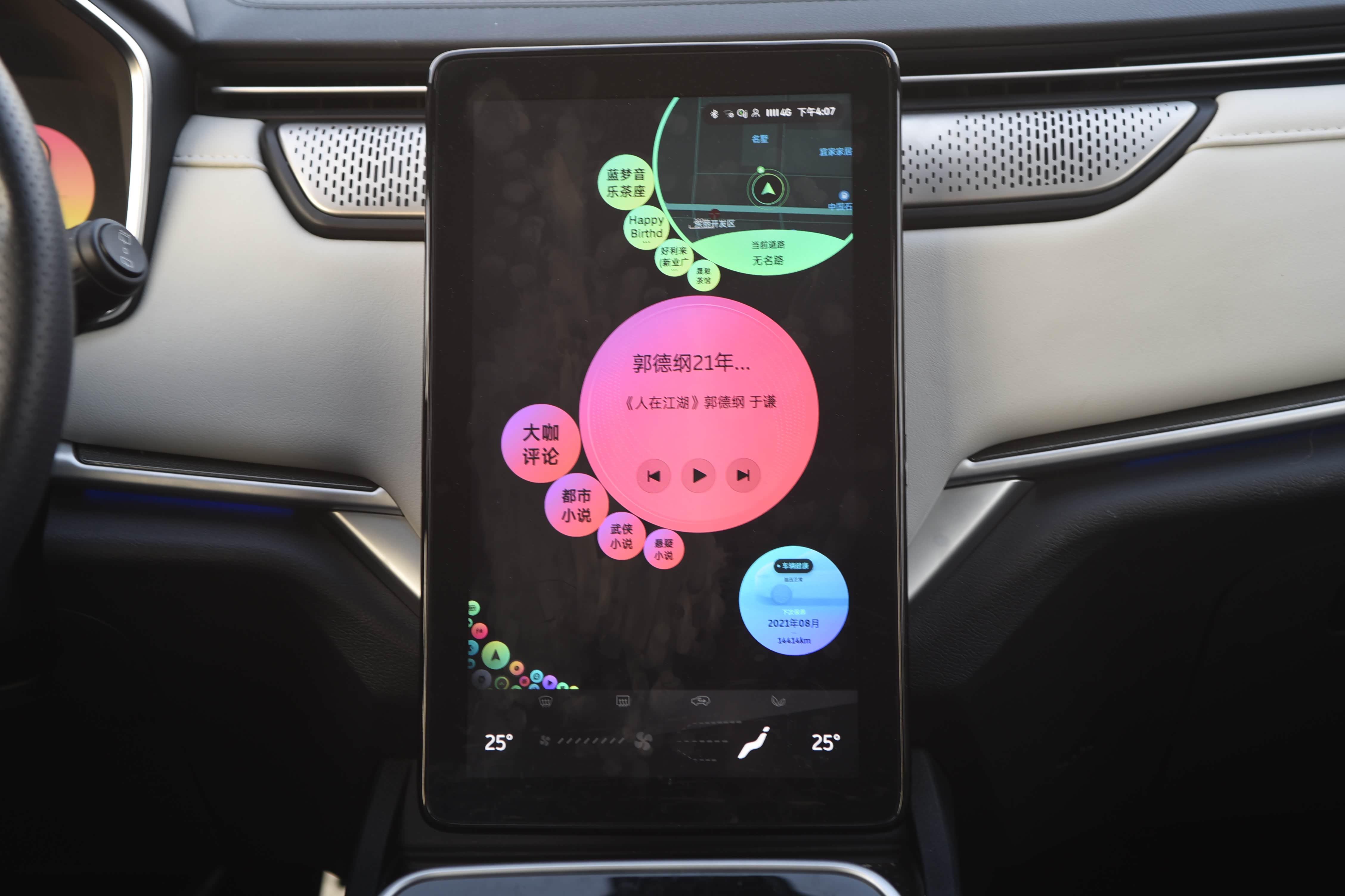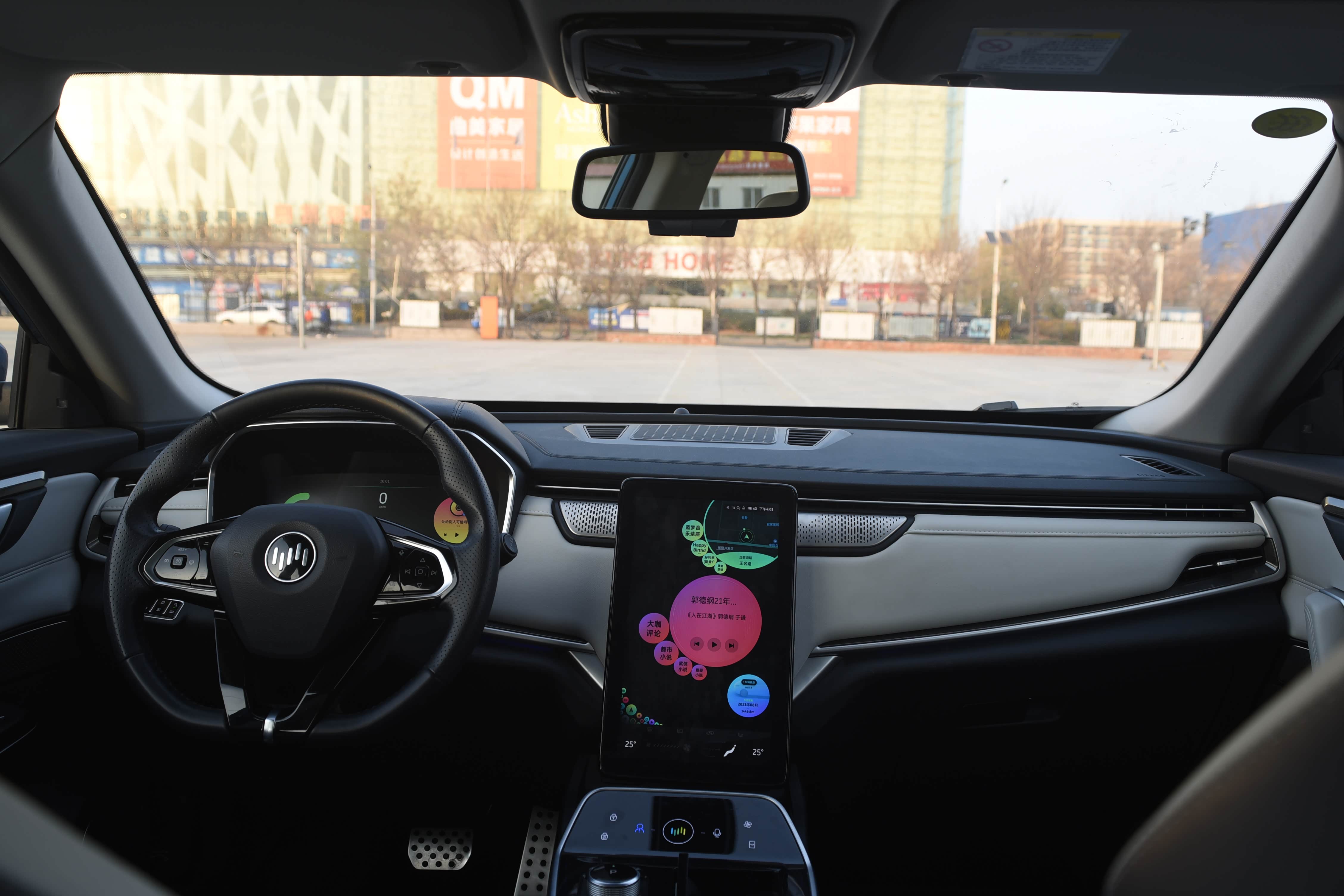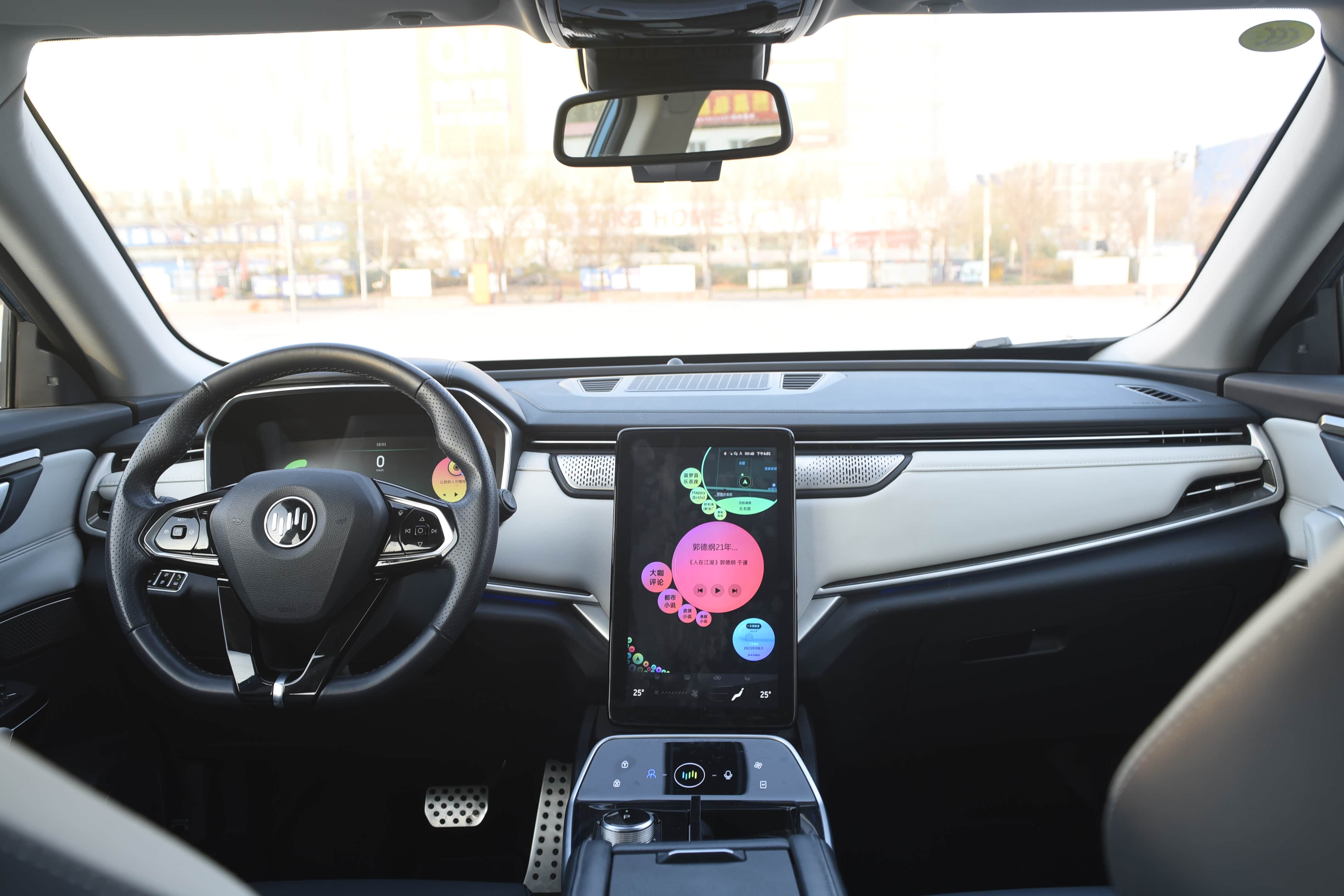 12.3英寸仪表盘内置续航、电池耗电量、动能回收、胎压监测、导航、微信、多媒体、ACC自适应巡航等功能,显示效果细腻。同时可以通过方向盘的控制键可以对仪表进行设置、调整和切换。