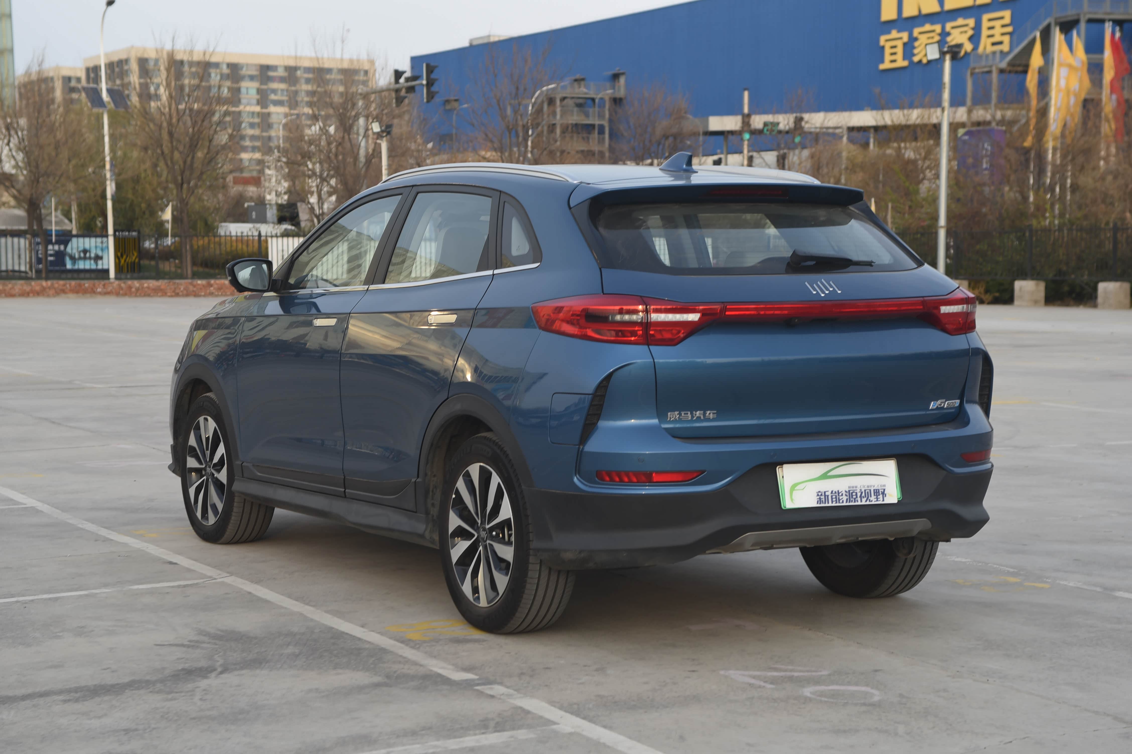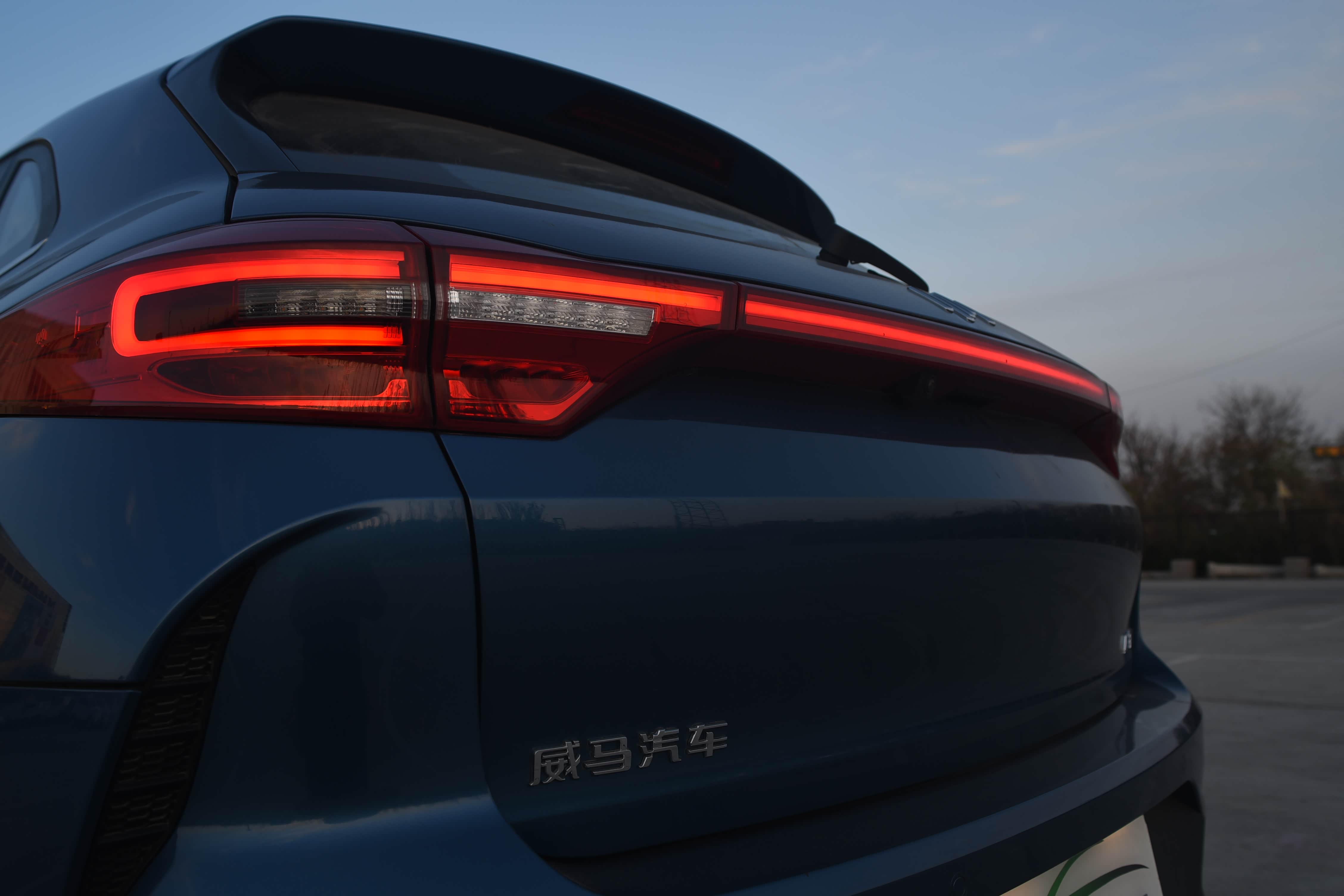 尾部,车尾具备威马特有特征曲线,经典兼具动感,与车头的特征一脉相承。贯穿式LED尾灯组,提高整车的辨识度和层次感。后保险杠及下方,增添空气导流槽,宣示着更强的性能感。