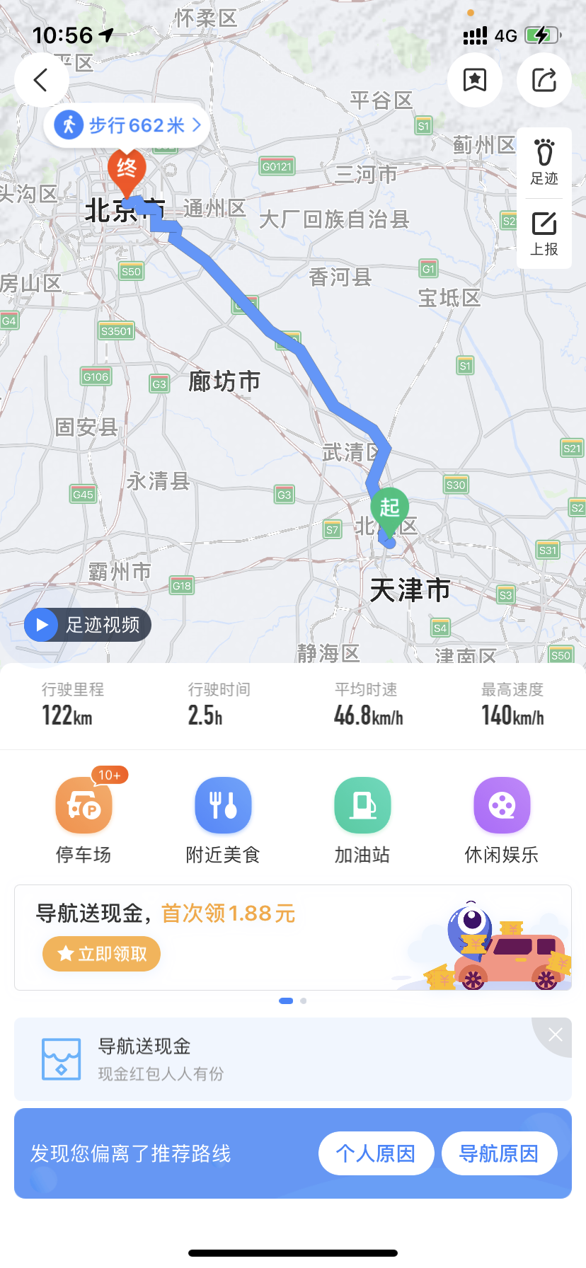 从天津本溪路昌图楼-北京王府井步行街,全程122公里,行驶在天津城市路段、天津封闭路面、天津非铺装路面、天津-北京高速路段、北京城市路段,期间简单测试下汽车加速度、汽车转弯平衡性、乘坐感受等动力性能和汽车续航。
