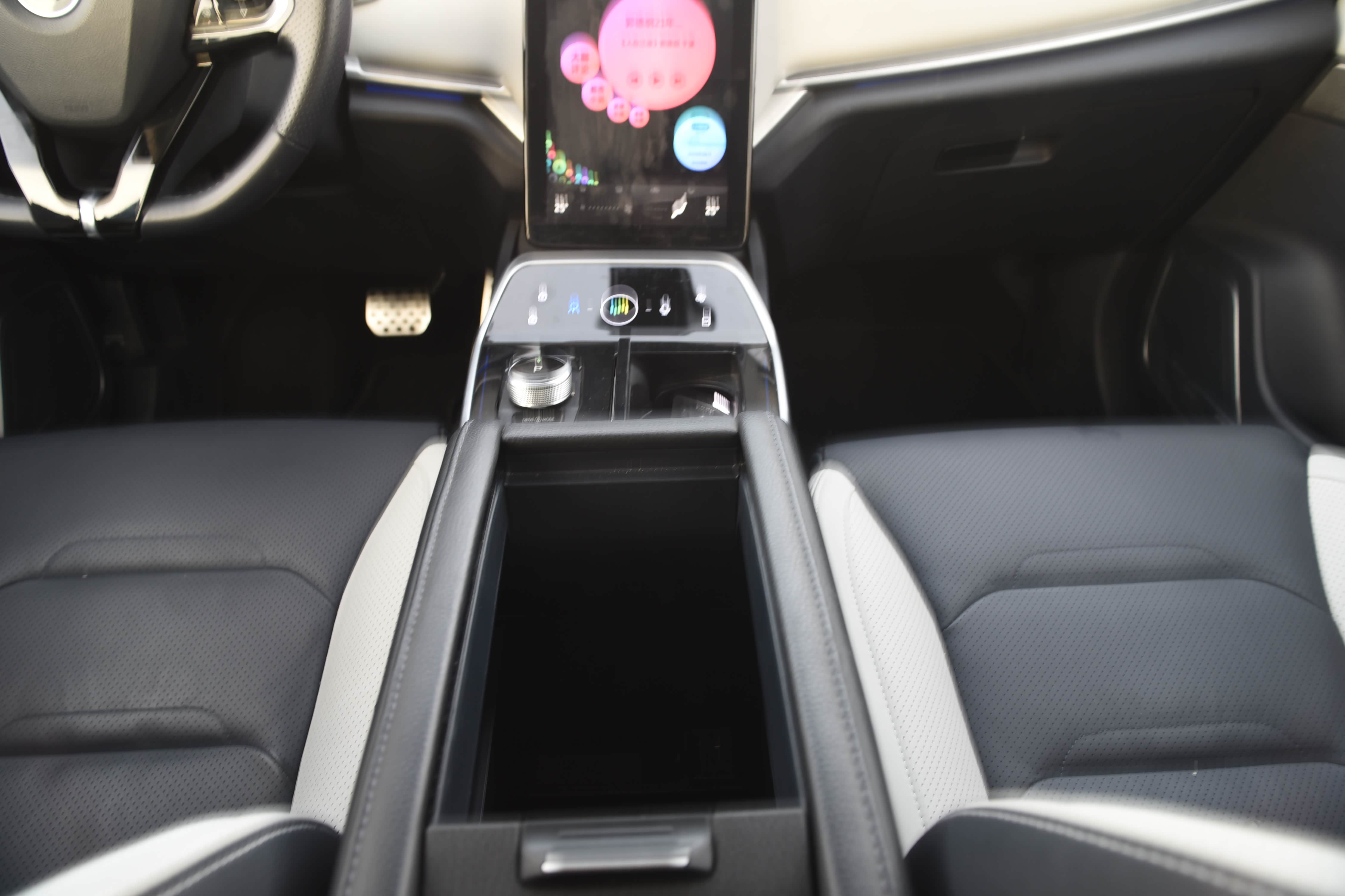 中央扶手采用上下部设计风格,这样能得到更大的使用空间。上部采用悬浮式设计,最前边i-Control控制面板集成多个常用快捷功能,符合人机工程学设计,主副驾驶位触手可及,并与12.8英寸悬浮式智能旋转屏及12.3英寸互动液晶数字仪表形成三屏一体式智能交互体验。
