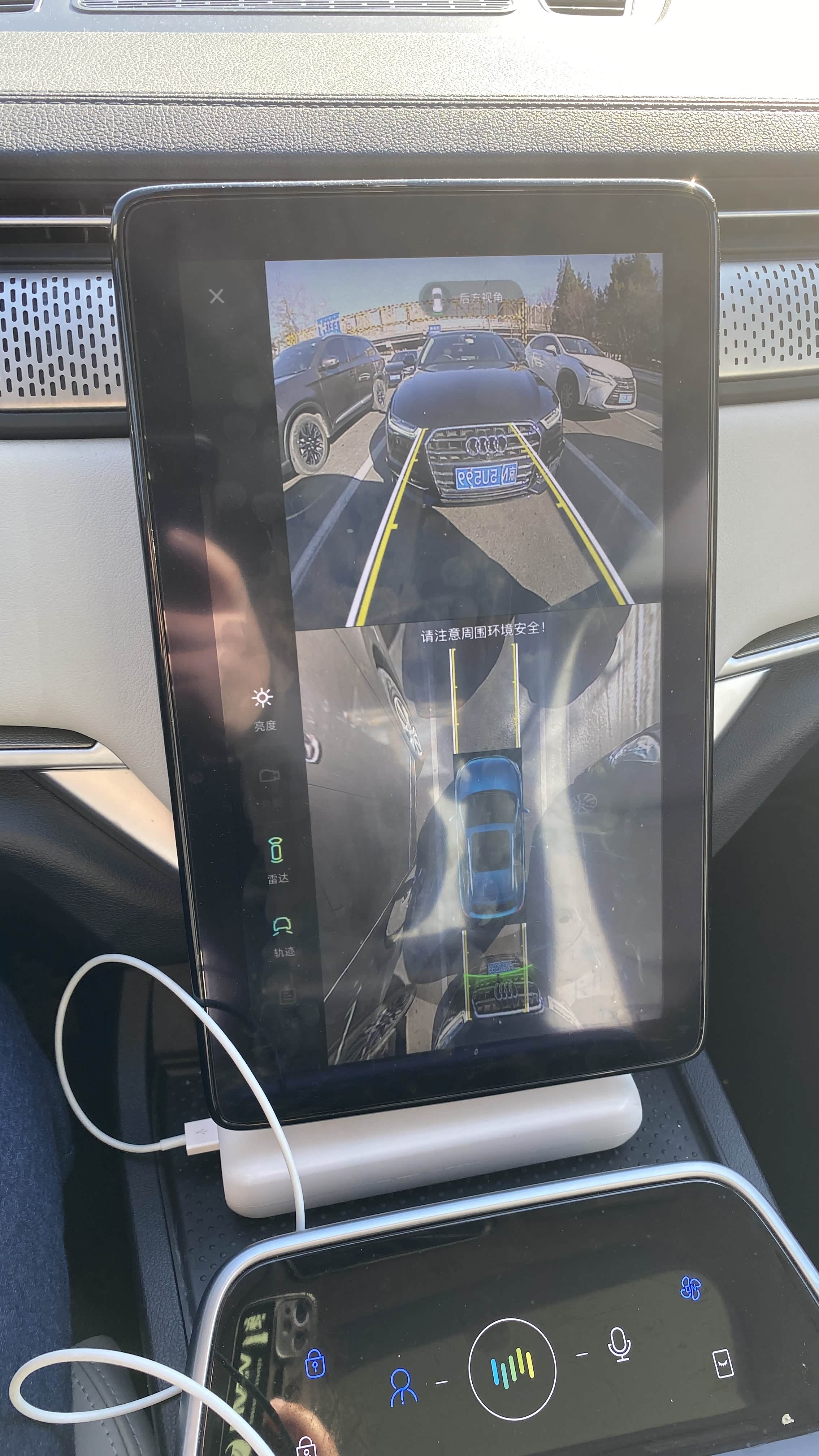 具有闪烁迎宾功能、充电进度提示与解车锁车提醒功能的业界首创智能场景式动态Logo,当用户带着钥匙靠近车辆2.5米的范围时,车辆自动解锁同时车前发光logo闪烁迎宾效果。