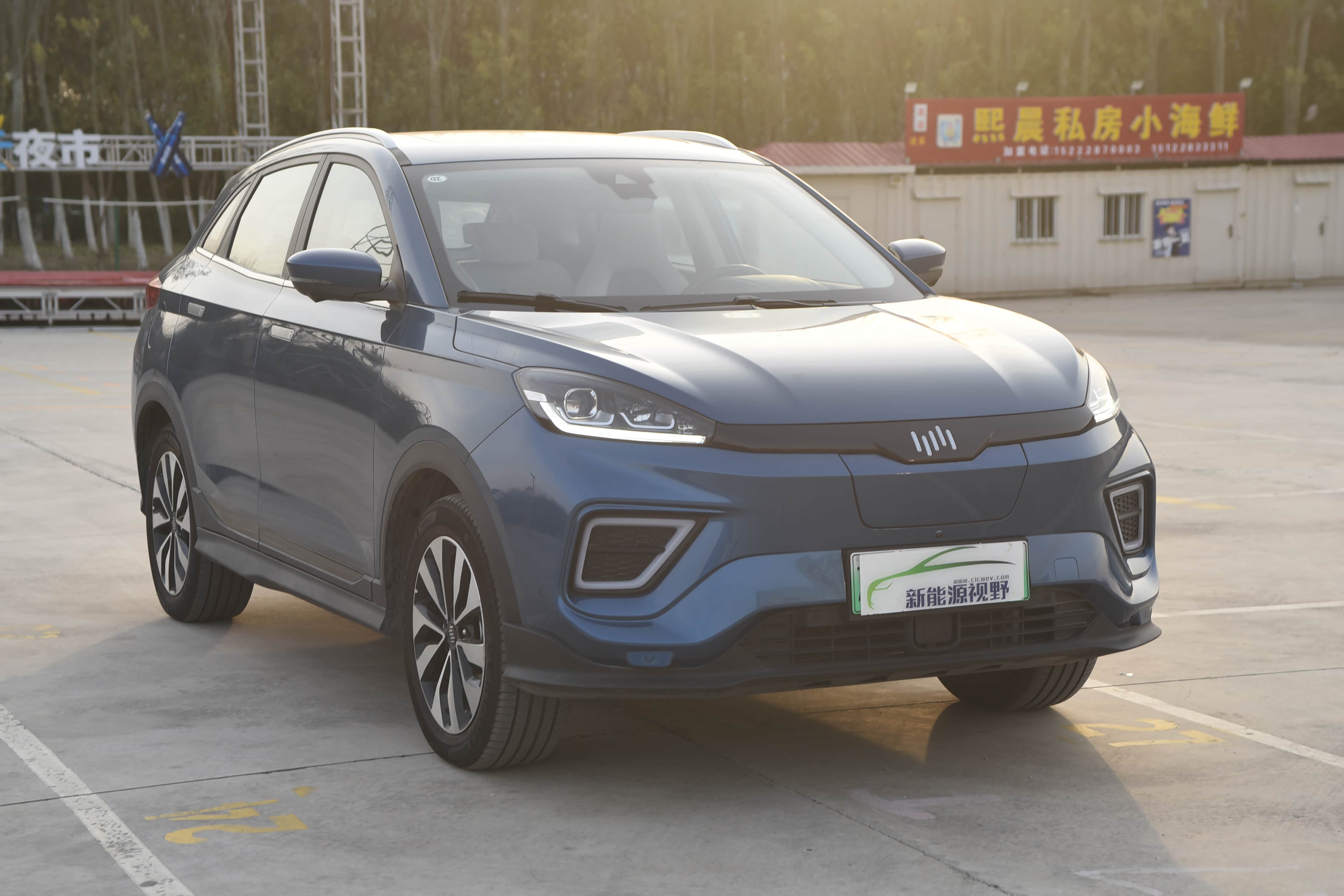外观方面,双“Z”字型动感前脸,设计灵感源自鹰翼展翅,搭配富有层次感的线条,与前银色金属质感智能Logo灯完美呼应,形成了威马家族式独特的设计语言。前脸封闭式进气格栅正上方镶有业界首创的智能场景式动态logo,既彰显身份,又具有未来时代感。远近一体式全LED前大灯,完美融入车身低风阻曲面,穿透力更强,保障行驶安全。下包围6边形横断式熏黑贯穿造型的进气格栅,两边搭配几何造型进气口,可以有效地降低风阻。底部做了熏黑处理的前唇,使整体前脸造型看似运动霸气。