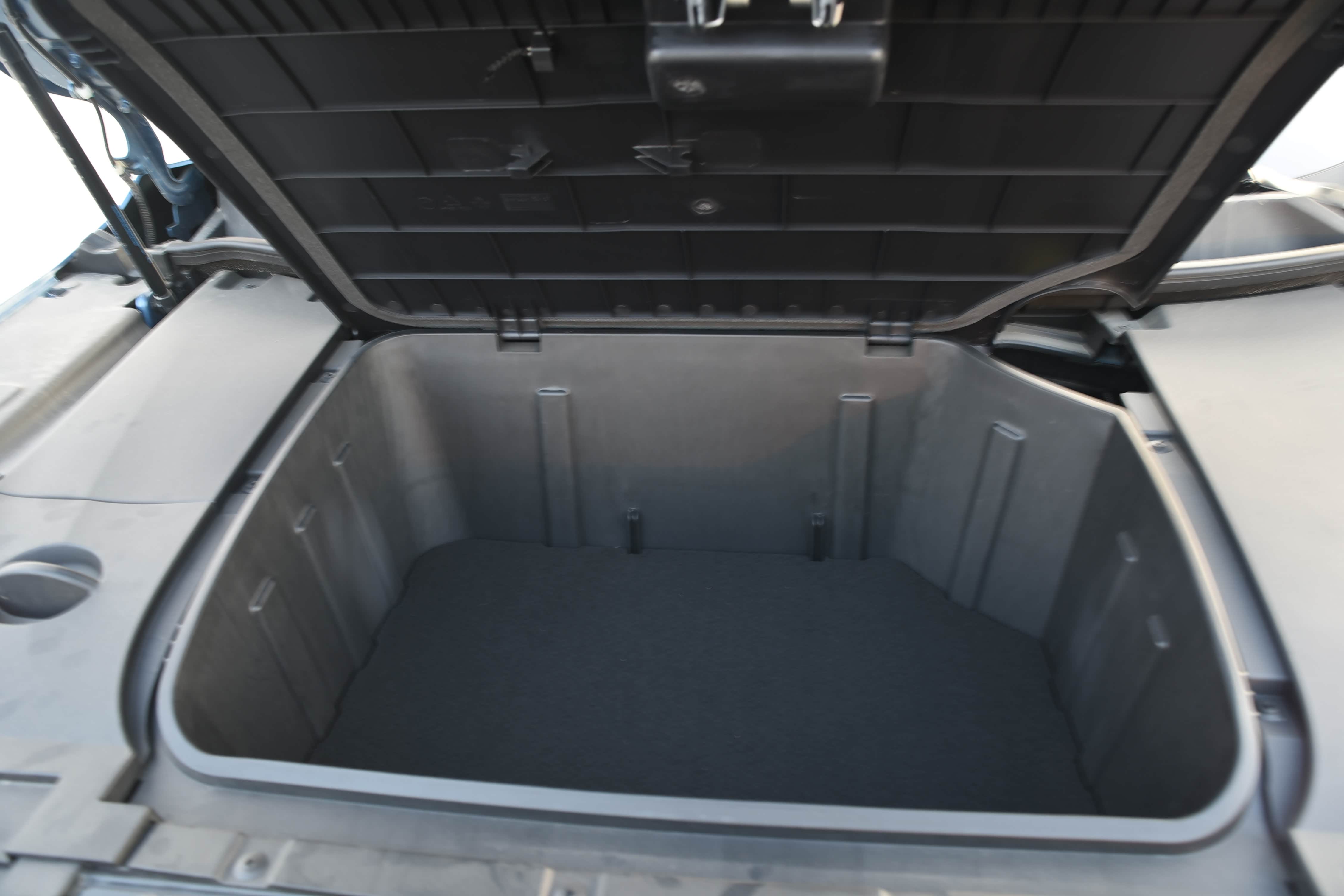 由于EX5-Z采用前驱挂载电机的设计,致使前机盖设有带盖的前备箱,但空间不算太大,仅适合放1个20英寸的登机箱。