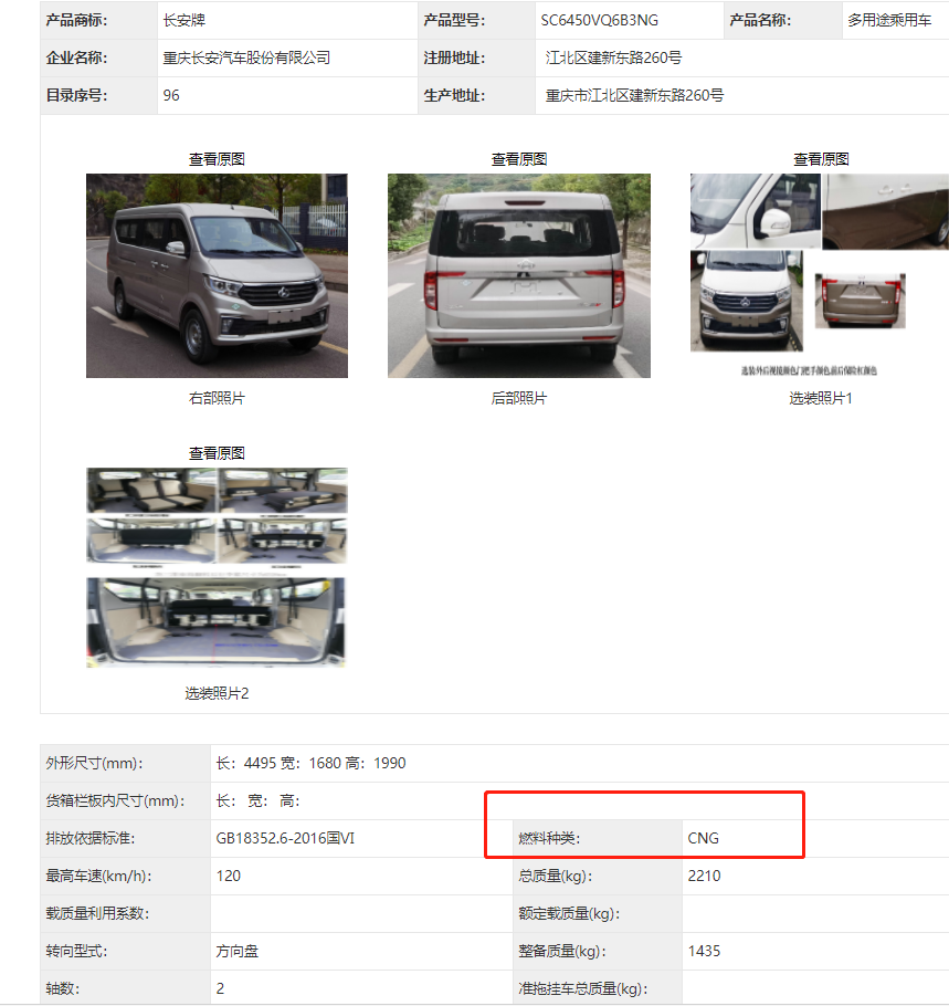 动力部分也是这辆车的亮点,从前面外观图车头和车尾的CNG标识其实我们就已经能够看出这是一辆不用烧汽油的CNG天然气动力版车型了,其搭载的是一台东安动力的型号为DAM16KRC的1.6L发动机,最大功率为77kw,原厂就是CNG的匹配让其比同级的燃油车更具优势。上市后将会成为五菱之光之类车型的新对手。