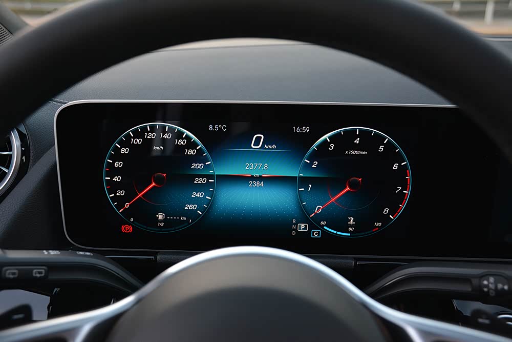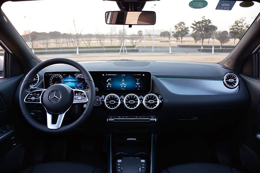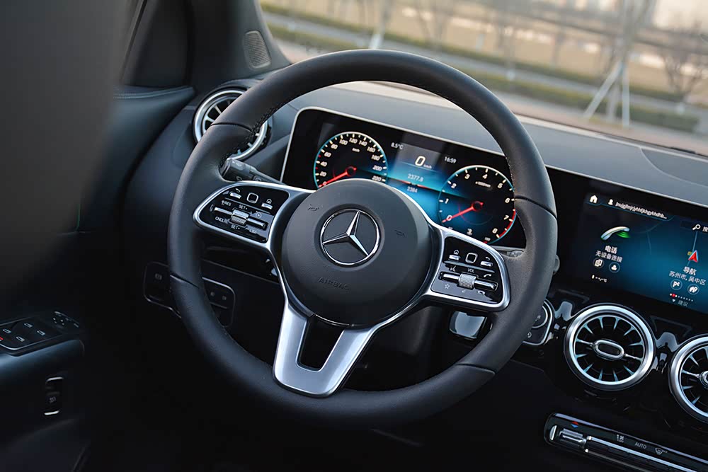 奔驰GLA采用了时下奔驰家族常见的一体式仪表盘与中控屏设计;其中,10.25英寸全液晶仪表盘画面显示细腻,并采用了奔驰最新UI设计以及多种主题模式。