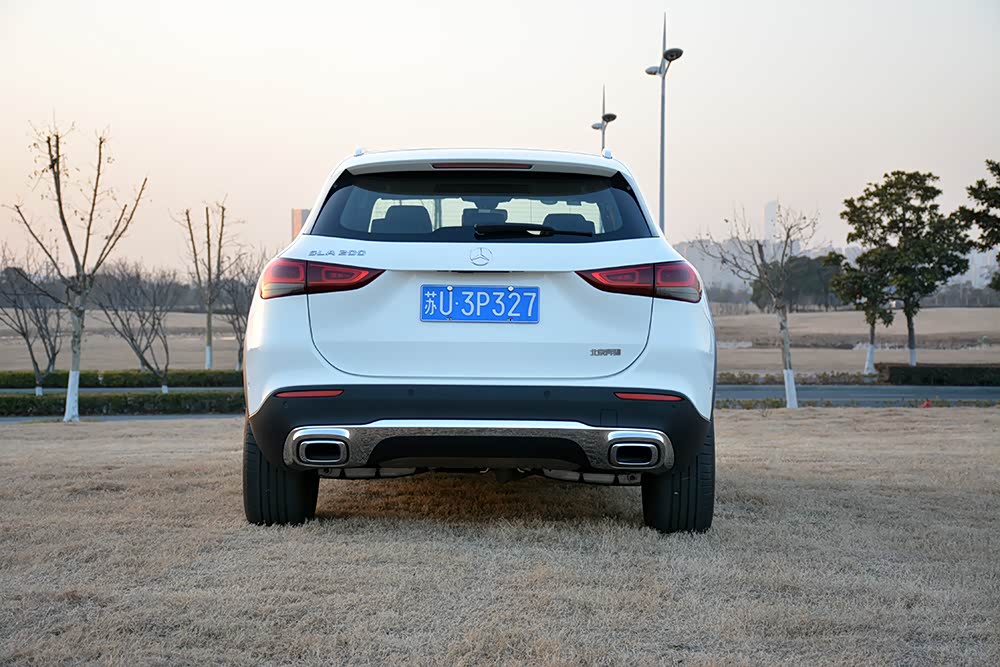 车尾部分,奔驰GLA同样采用了全新设计,除了更为修长的尾灯外,其整体造型也更为简约,摒弃了上代车型尾部大量的镀铬装饰,仅保留了后包围上连接两侧双排气管的镀铬条。此外,造型修长而犀利的全新尾灯还采用了运动化的熏黑式设计,而内部双环型LED灯带也很有辨识度。