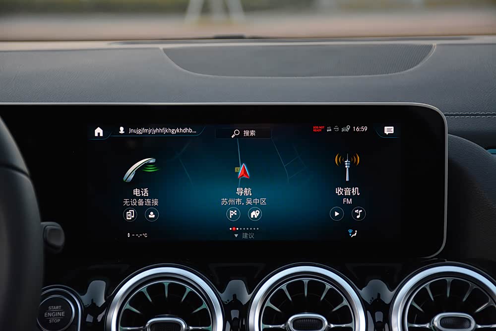 与全液晶仪表盘连为一体的是10.25英寸触控式显示屏,并集成了奔驰最新MBUX车机系统,而除了常规多媒体、车辆设置等功能外,此系统还支持“你好,奔驰”语音控制功能、OTA在线升级与车联网,并且系统UI界面设计与流畅度也很不错。