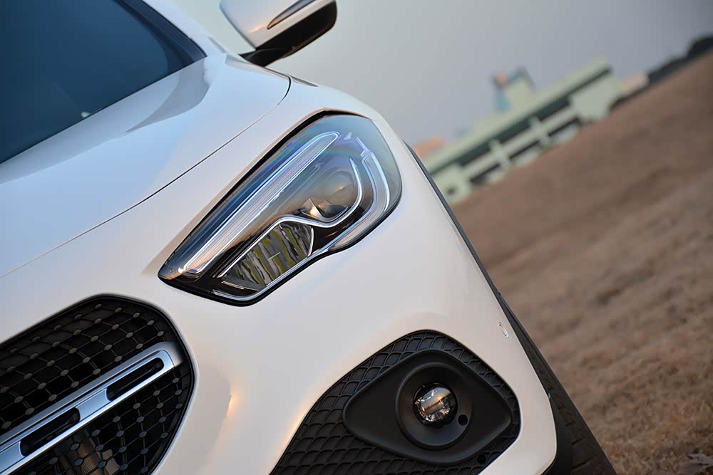 奔驰GLA所配备的全LED前大灯设计在上代基础上进一步演化,除了更为流畅的外部设计外,内部灯组结构也重新调整,看上去更具层次感。此外,圆形LED前雾灯周围的鱼鳞形黑色网格设计也很有个性。