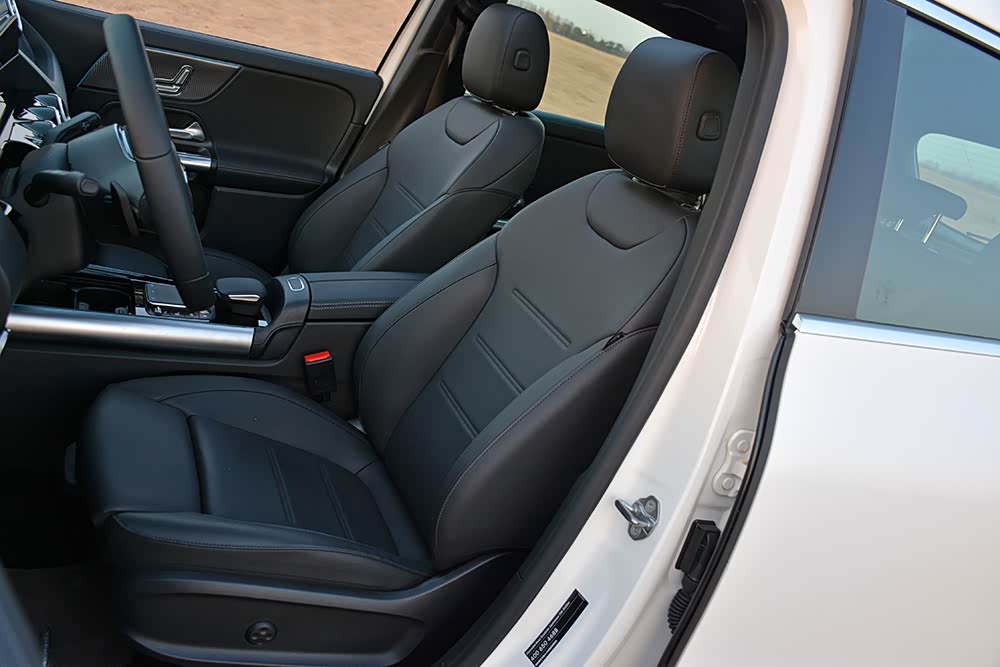 奔驰GLA 200座椅采用了全黑色皮革包裹,运动式的座椅设计带来了不错的包裹性。此外,前排座椅支持腿部支撑与腰部支撑在内的多向电动调节,后排座椅配备有可收放中央扶手与三个独立可调头枕。