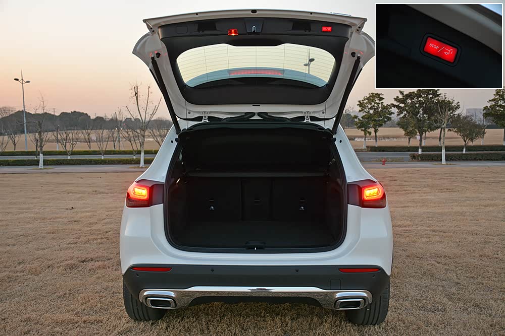 奔驰GLA的行李厢内部空间非常平整,并且后排座椅靠背支持4/2/4比例放倒,空间组合也很灵活,而电动尾门的配备更加方便了行李厢的开关。
