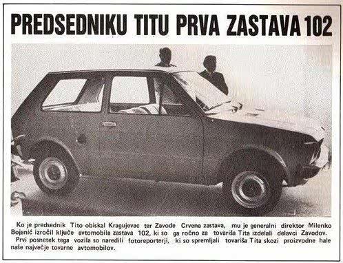 时间跳到七十年代,当时红旗工厂有小车Zastava 750,也有来自菲亚特128的紧凑级车Zastava 101(也叫Zastava 1100)。但Zastava 750日渐老态,红旗工厂决定生产一款尺寸更大也更现代化小车作为继任者。于是他们引进了菲亚特127,经过一系列本土化二次设计,在1978年制造3辆名为Zastava 102的原型车。据说,三部原型车中的一辆送给了南斯拉夫领导人铁托。
